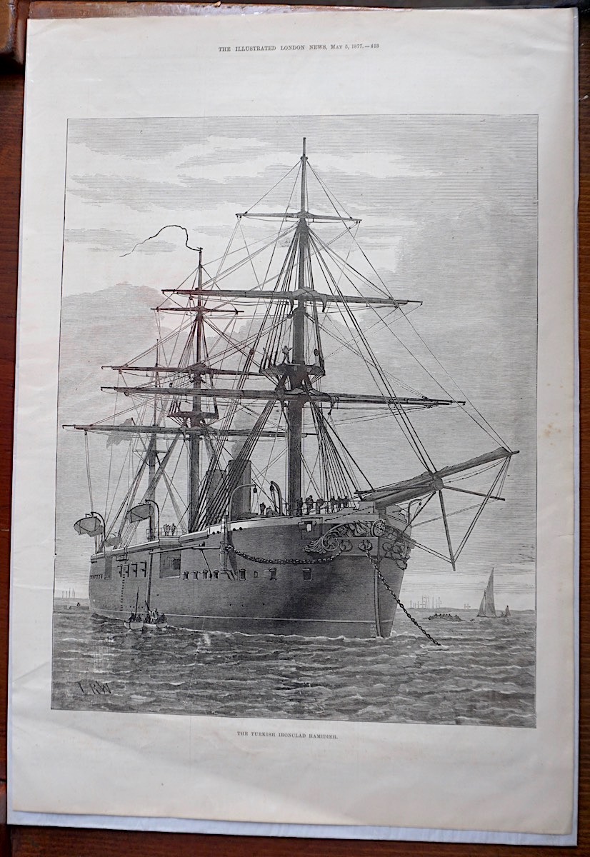 Antique Print, The Turkish Ironclad Hamidieh, 1871, credit Antiche Curiosità©