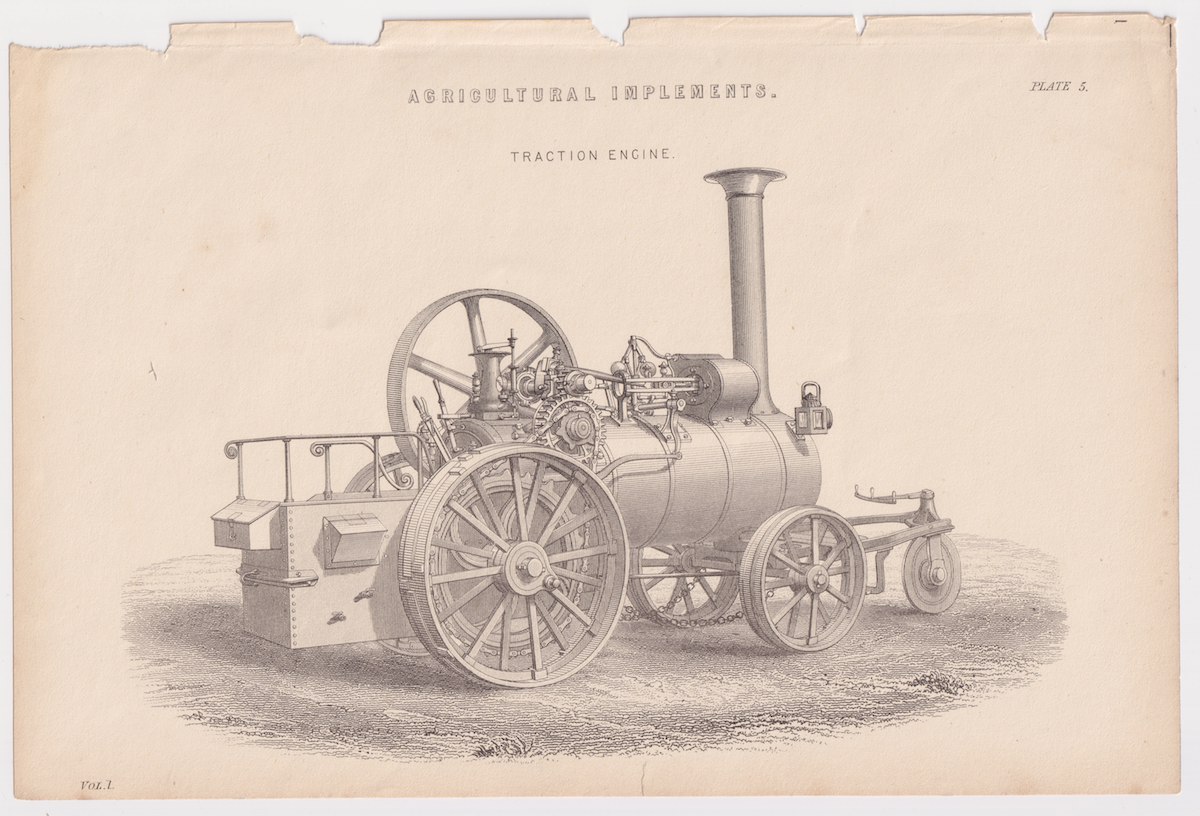Antique Print, Traction Engine, 1880, agricultural implements, 24,5 x 16,5 cm.