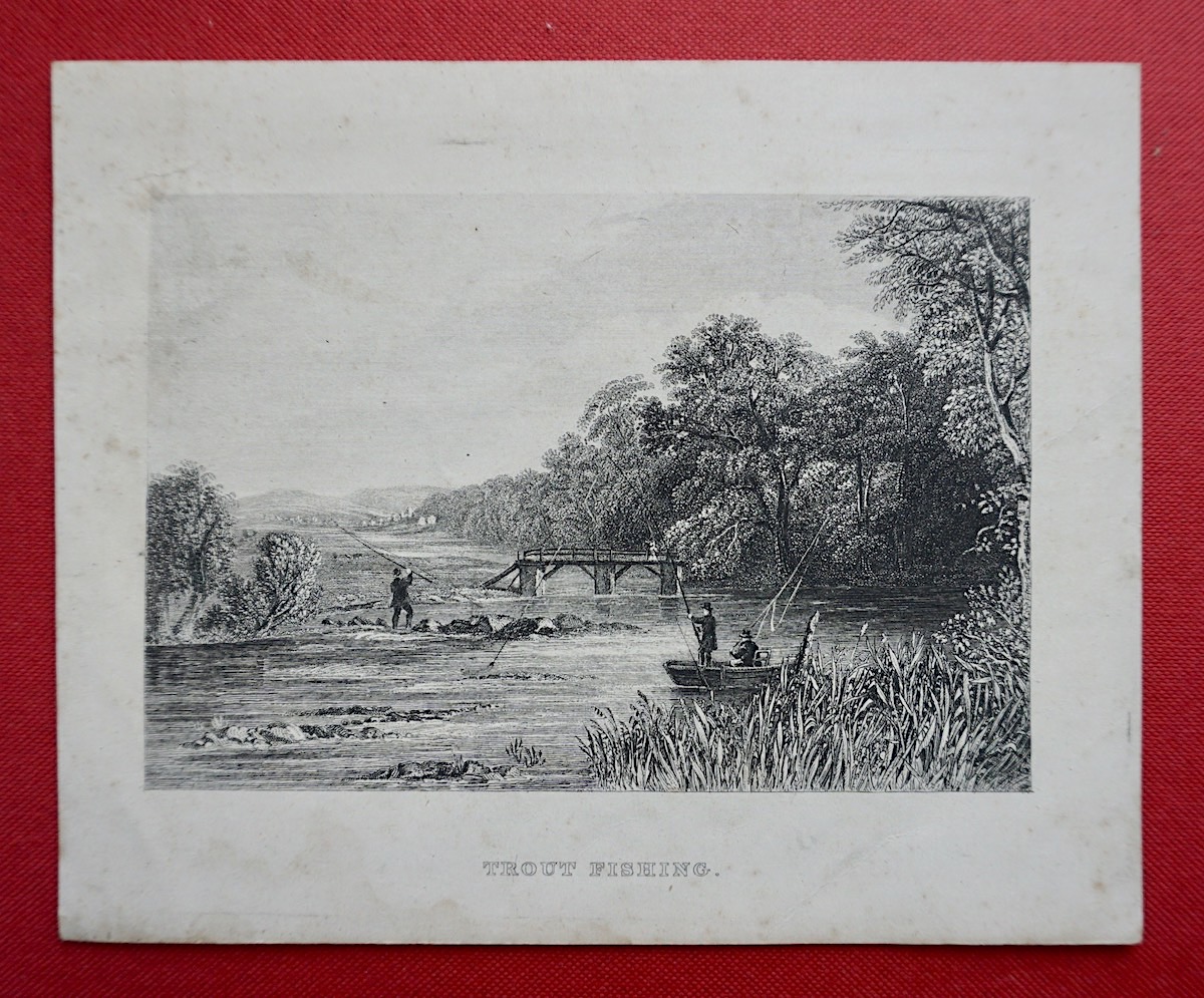 Antique Print, Trout Fishing, 1860 ca. 16 x 13 cm.