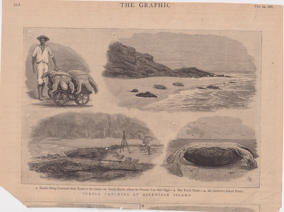 Antique Print, Turtle Catching at Ascension Island, 1883, credit Antiche Curiosità©