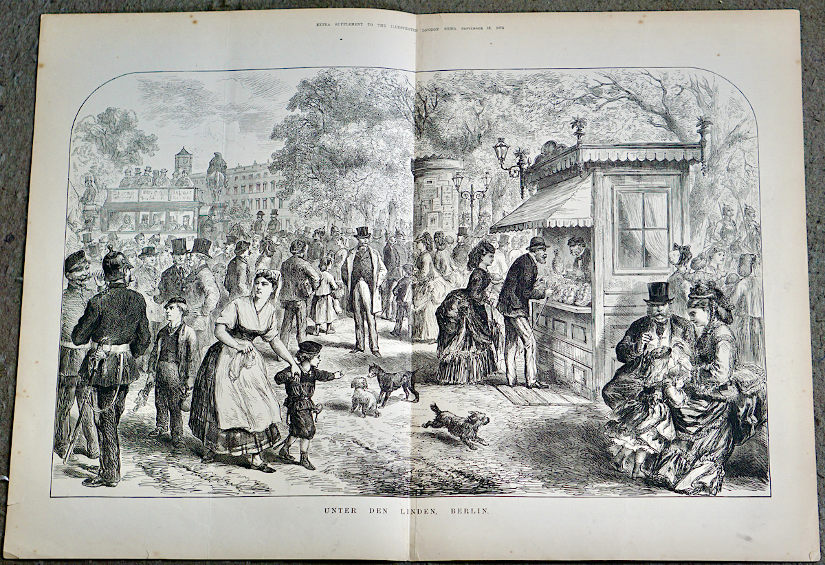 Antique Print, Unter Den Linden Berlin, 1873, credit Antiche Curiosità©