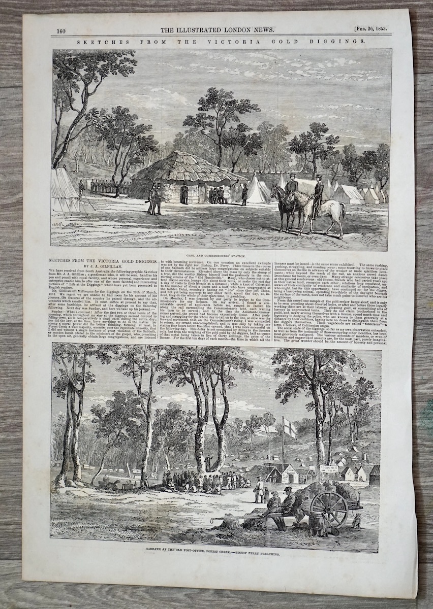 Antique Print, Victoria Gold Diggings, 1853, 39.8 x 27.7 cm.