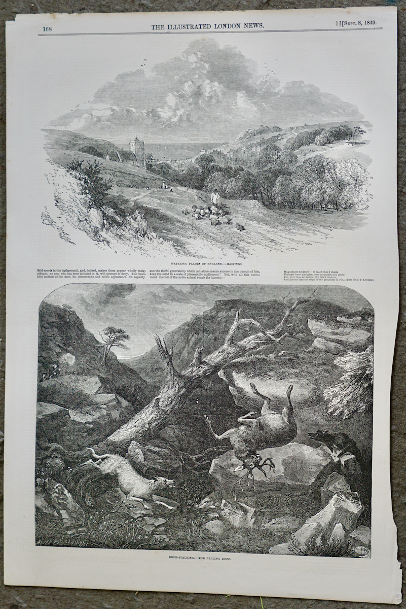 Antique Print, Watering Places; Deer stalking, 1849, credit Antiche Curiosità©