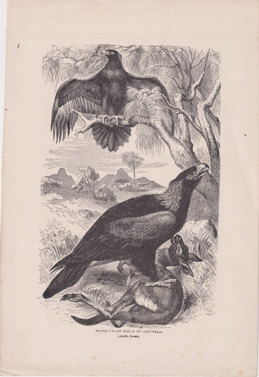 Antique Print, Wedge-Tailed Eagle of Australia, 1880 ca. credit Antiche Curiosità©