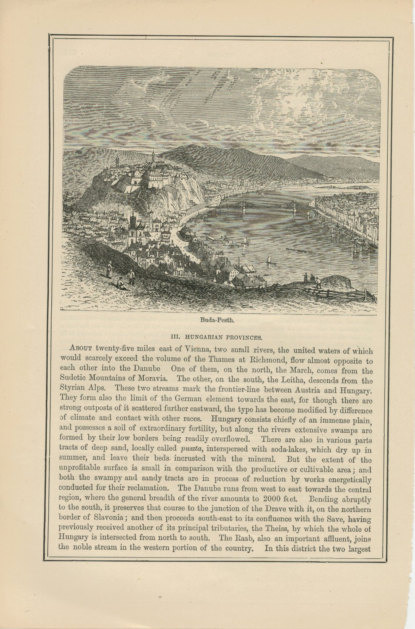 Antique Prints, Trieste, Buda-Pesth, 1890 ca., cm. 25,2 x 16,5.