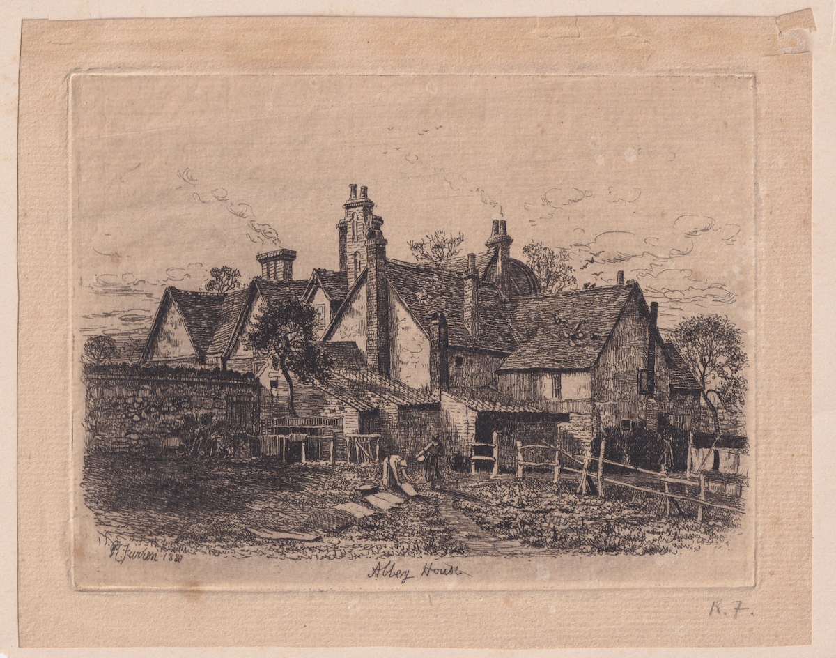 Antique Rare Original Engraving Print, Abbey House, signed by R. Furron 1880, credit Antiche Curiosità©