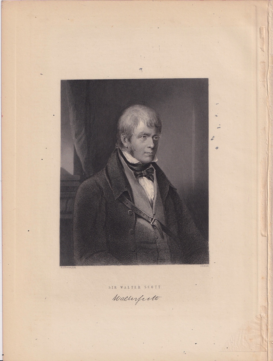 - Details: Half-length portrait depicting Scott in formal attire, with refined facial features and period clothing; includes engraved name caption and facsimile signature below the image, enhancing its historical appeal