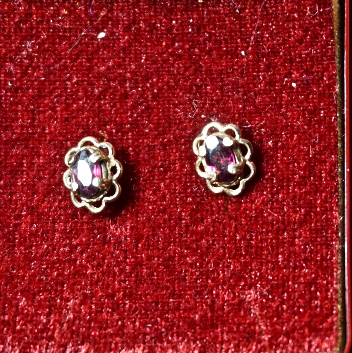 Antique Victorian Handmade Garnet Earrings, 9 k gold. Misses the butterfly scroll. Tested.