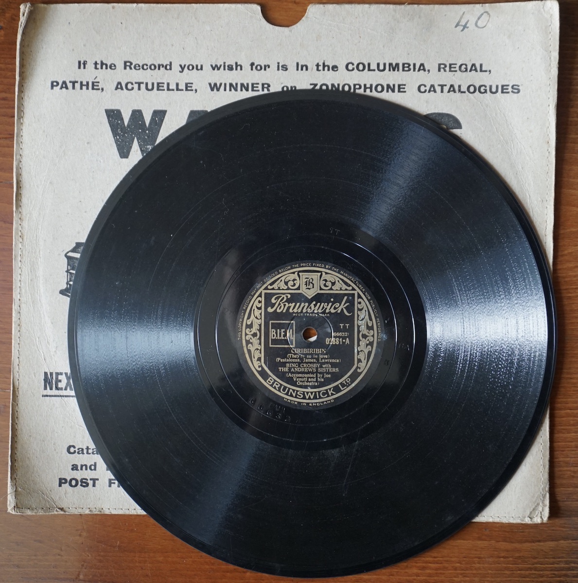 Ciribiribin; Yodelin Jive, Bing Crosby with The Andrews Sisters, Brunswick, 78 RPM, 1940, credit Antiche Curiosità©