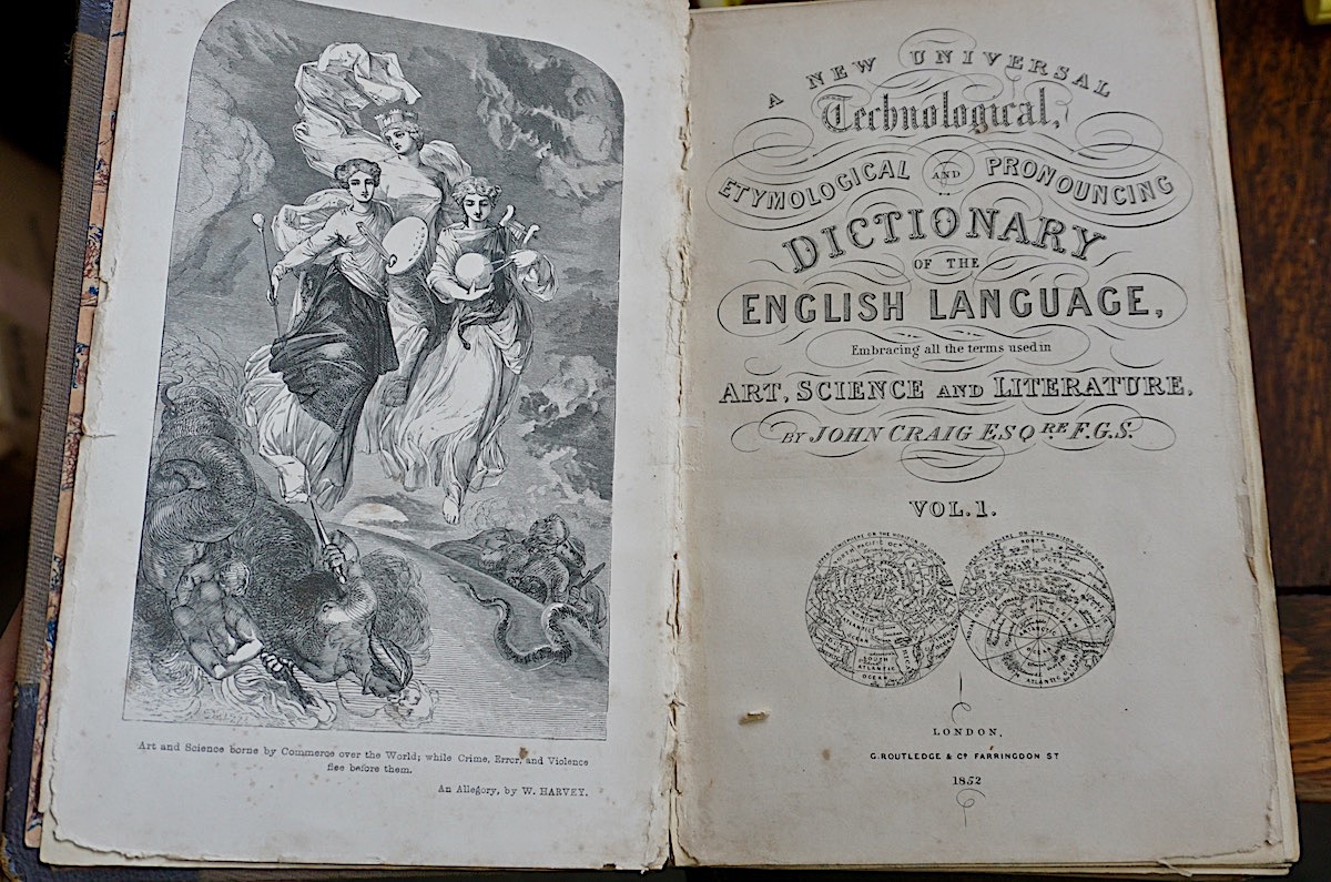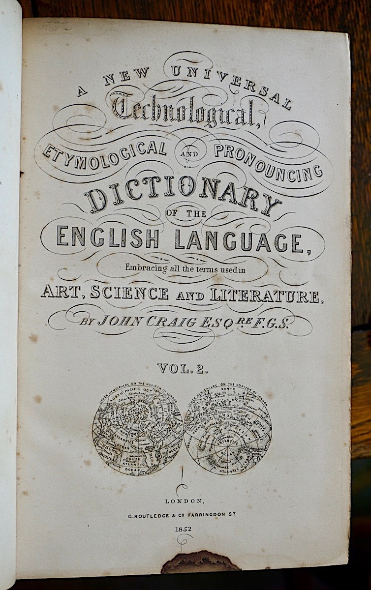 A New Universal Technological Etymological and Pronouncing Dictionary of the English Language, John Craig, Routledge, 1852, credit Antiche Curiosità©