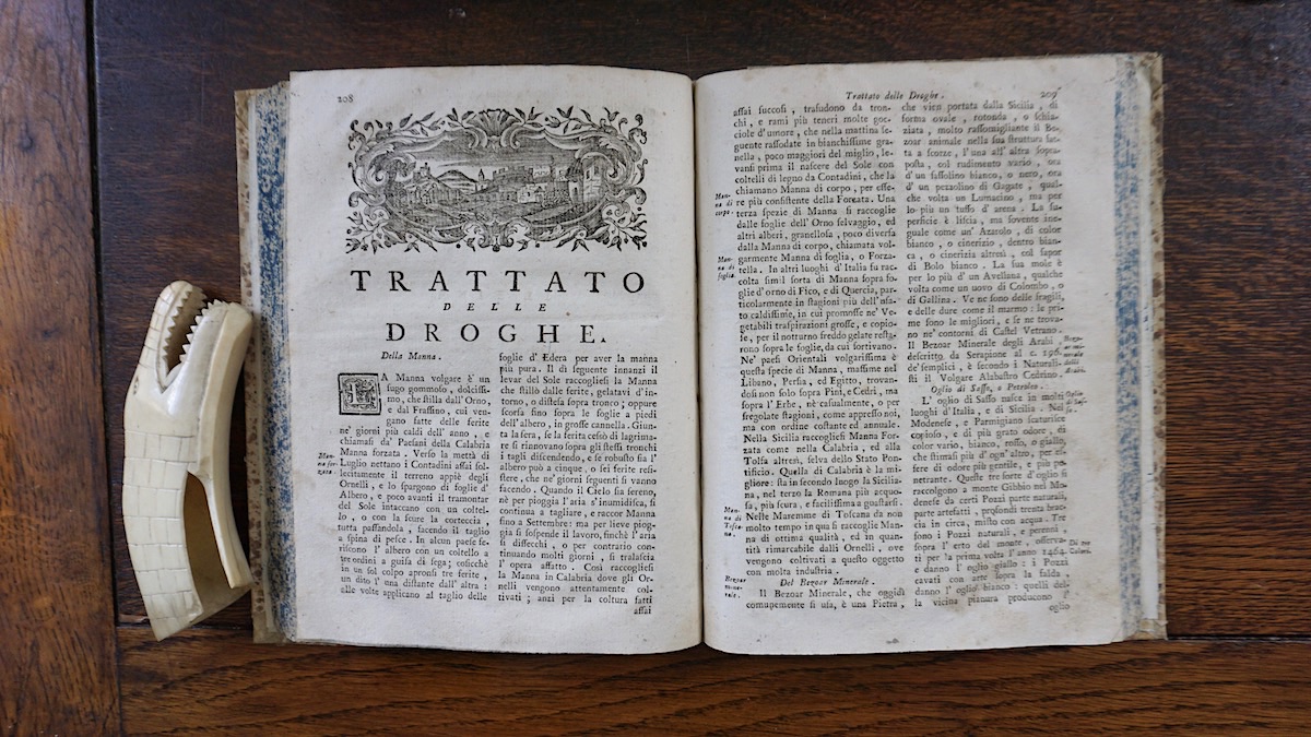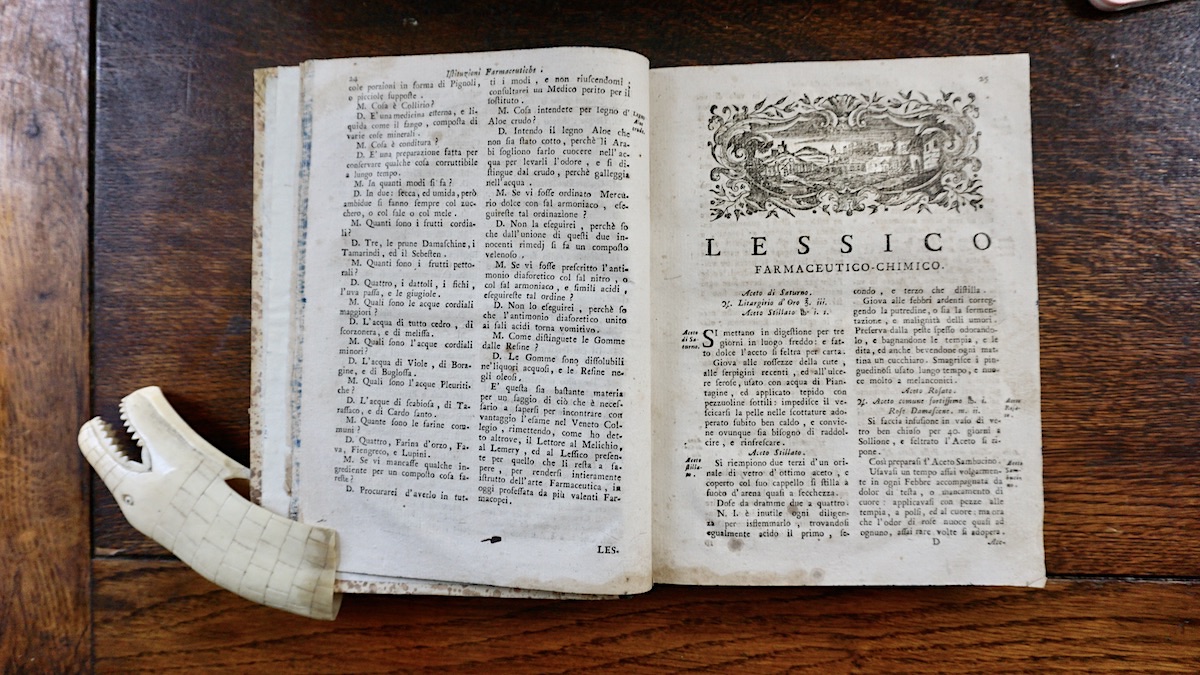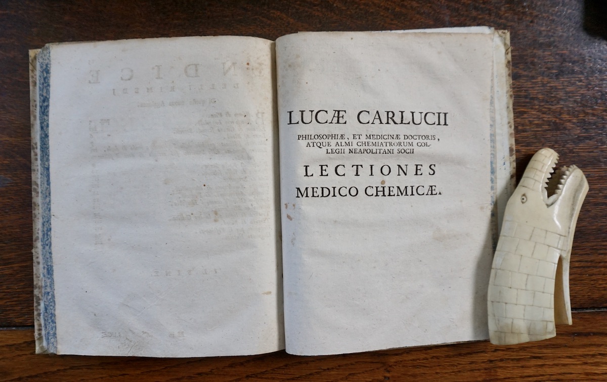 Gio. Battista Capello, Lessico farmaceutico-chimico… 1754; Lucae Carlucii, Lectiones medico-chemicae, 1761, credit Antiche Curiosità©