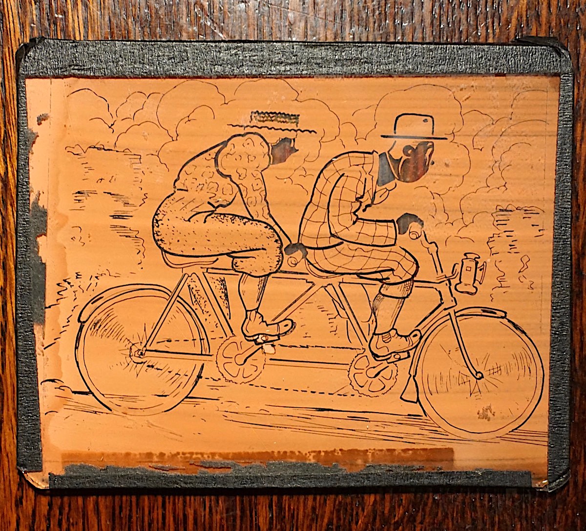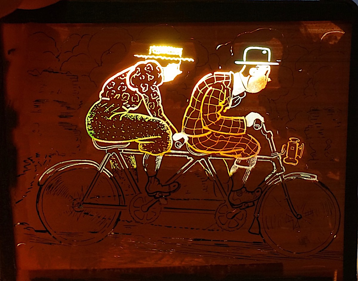 Glass magic lantern, Tandem ride, 1930, credit Antiche Curiosità©