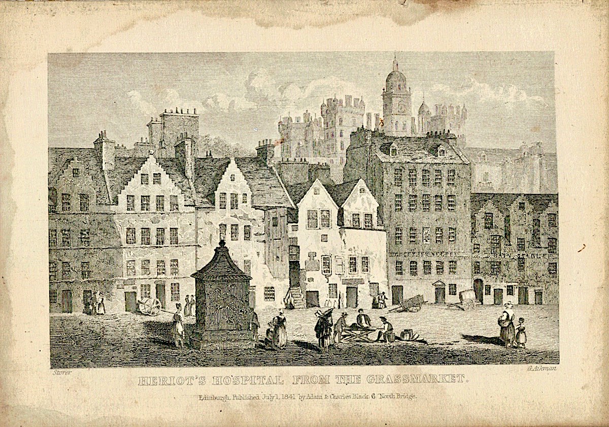 Heriot’s Hospital from the Grassmarket, 1841, credit Antiche Curiosità©
