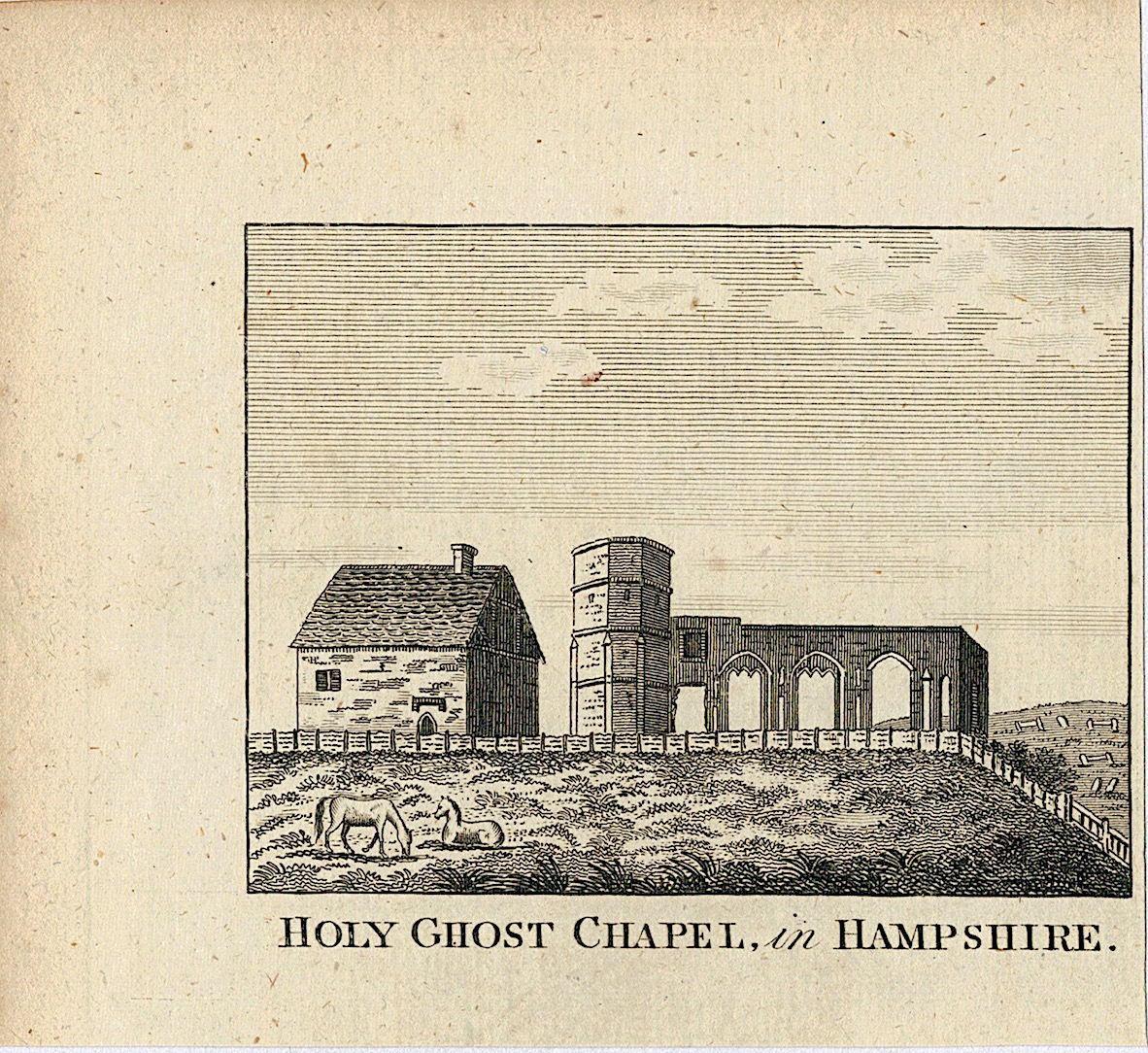 Antique Engraving Print, Holy Ghost Chapel in Hampshire, 1810, credit Antiche Curiosità©