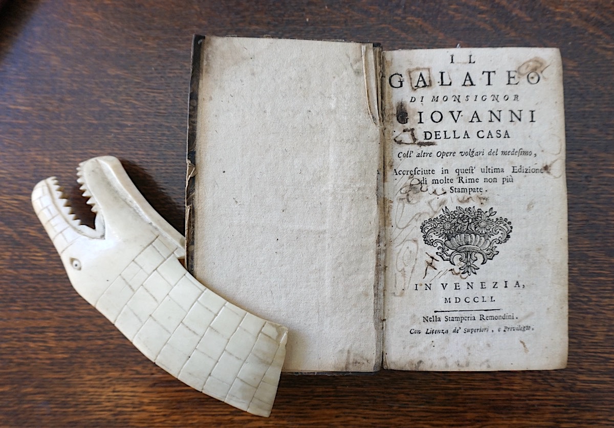 Il Galateo di Monsignor Giovanni Della Casa, Remondini, Venezia, 1760, credit Antiche Curiosità©