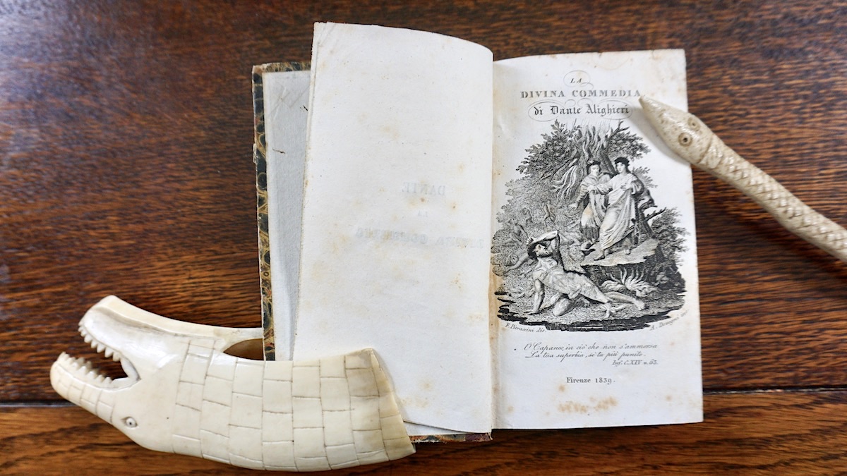 La Divina Commedia di Dante Alighieri con argomenti e note di Giuseppe Borghi, Roma, con Facoltà, 1839, credit Antiche Curiosità©