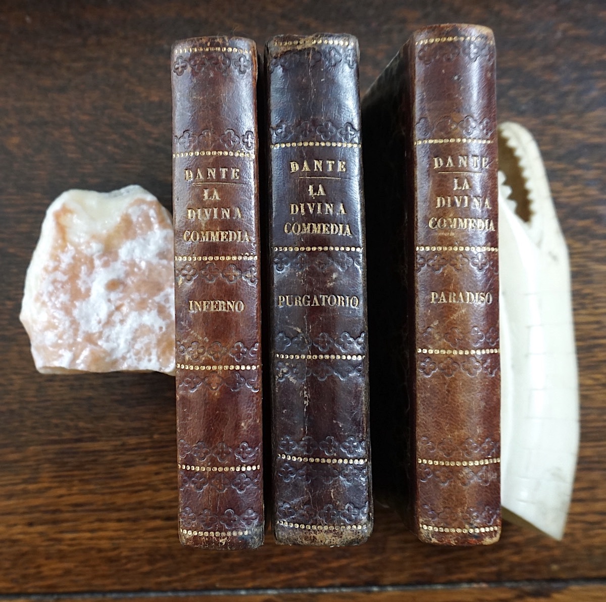 La Divina Commedia di Dante Alighieri con argomenti e note di Giuseppe Borghi, Roma, con Facoltà, 1839 with “Vita di Dante Alighieri scritta da Paolo Costa”, 3 vol.