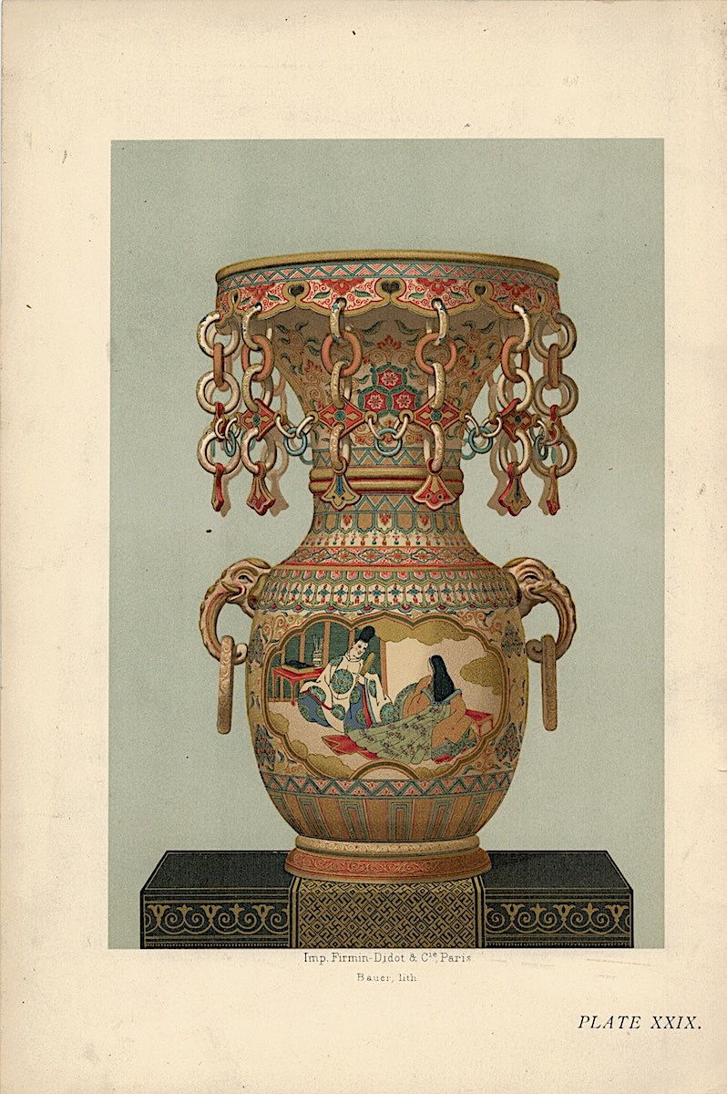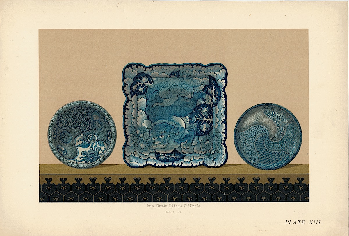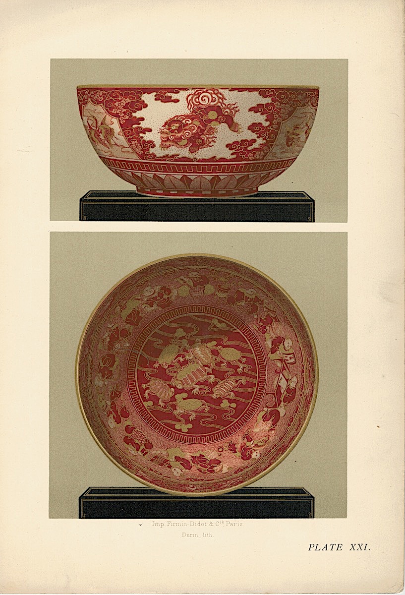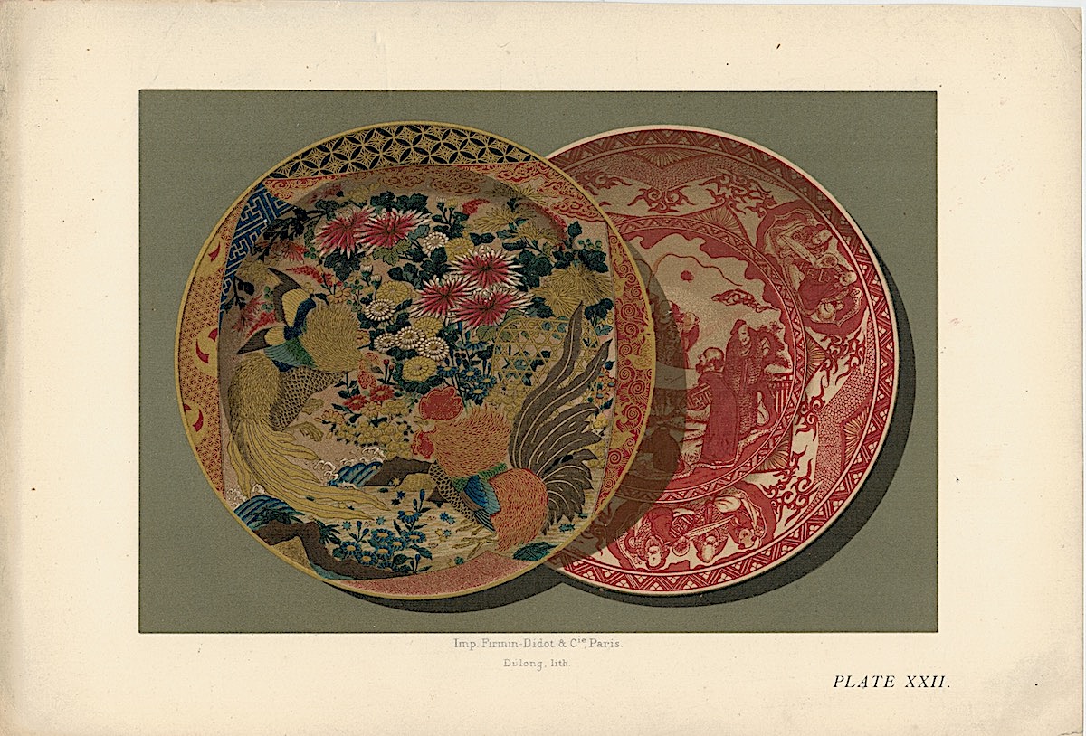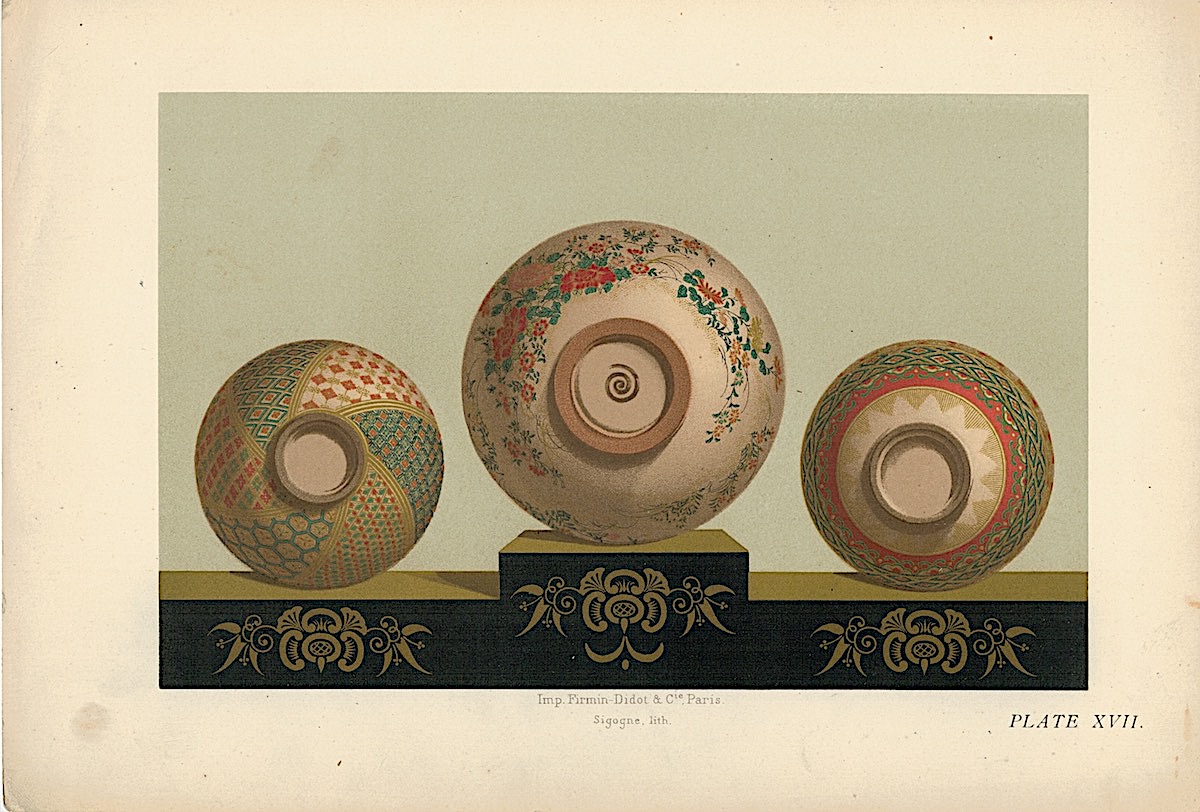 Lot of 15 Colour Chromolithographs from “Keramic Art of Japan”, 1881, credit Antiche Curiosità©