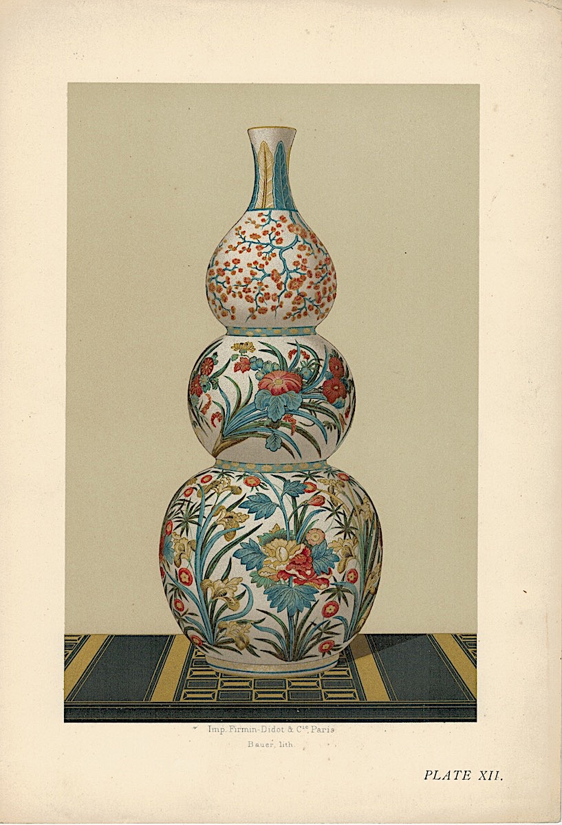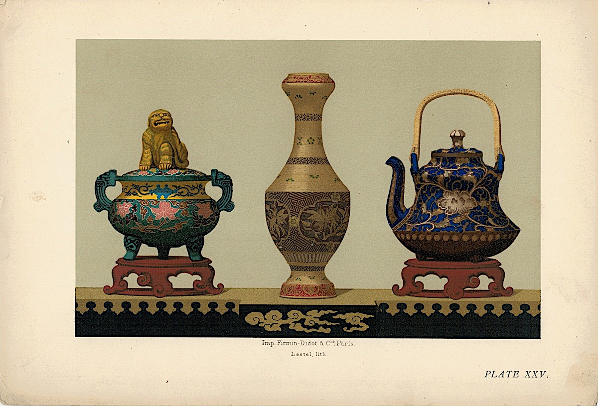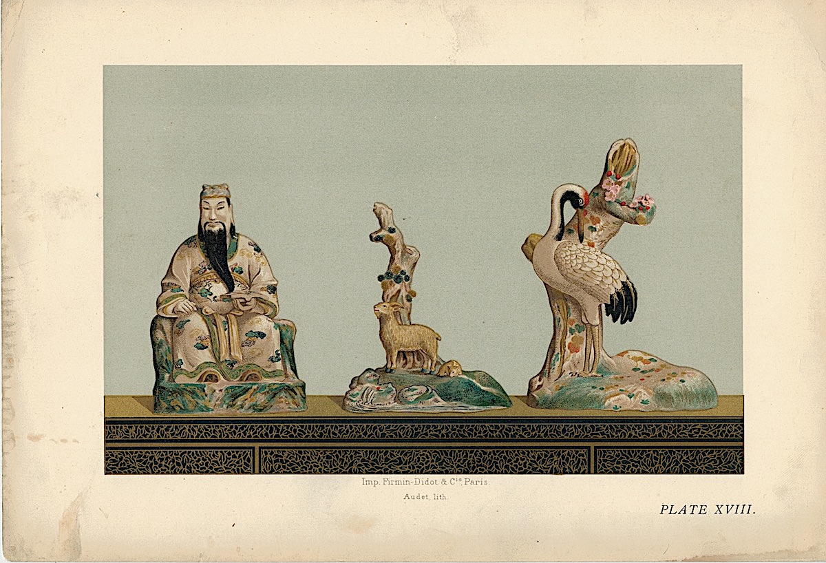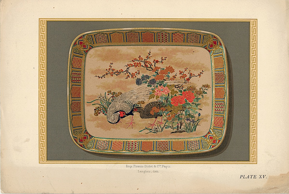 Lot of 15 Colour Chromolithographs from “Keramic Art of Japan”, 1881, credit Antiche Curiosità©