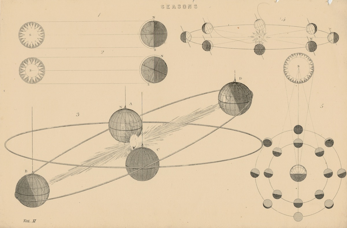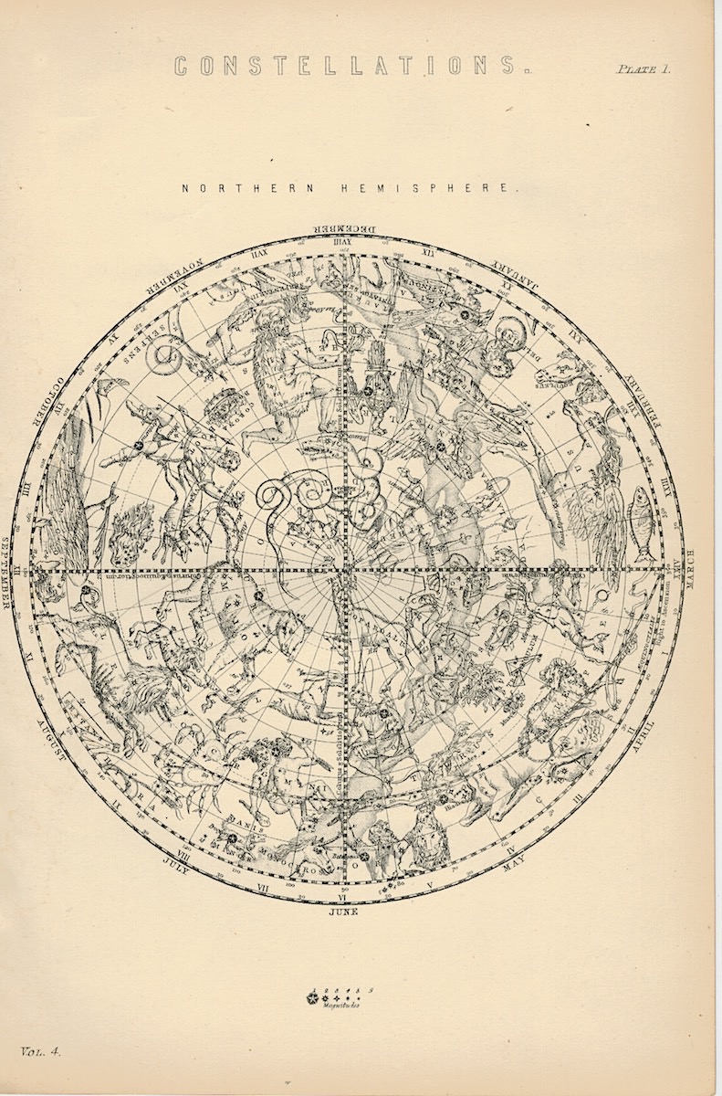 Lot of 2 Antique Prints, Constellation and Seasons, 1870, 24,3 x 16,3 cm. from the book The National Encyclopaedia a Dictionary of Universal Knowledge, vol IV.