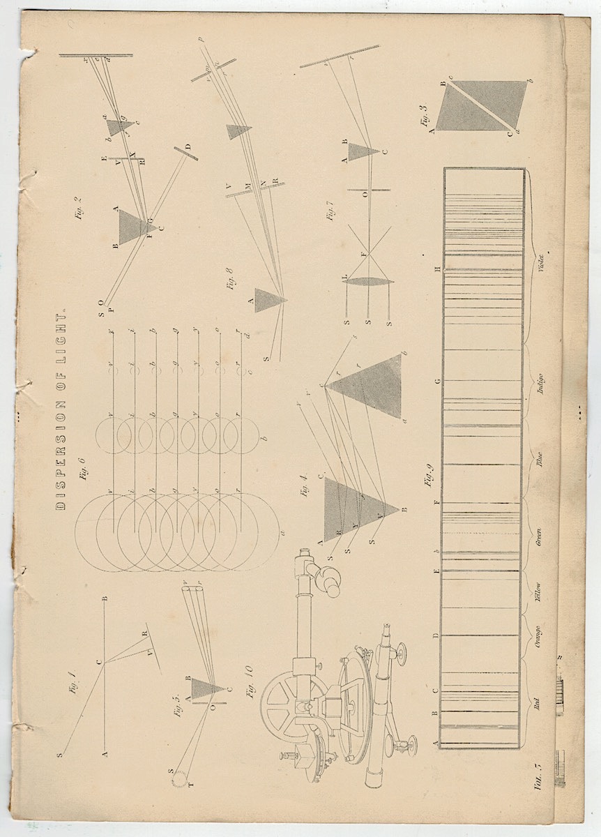 Lot of 2 Antique Prints, Dispersion of light; Dock, 1800, credit Antiche Curiosità©