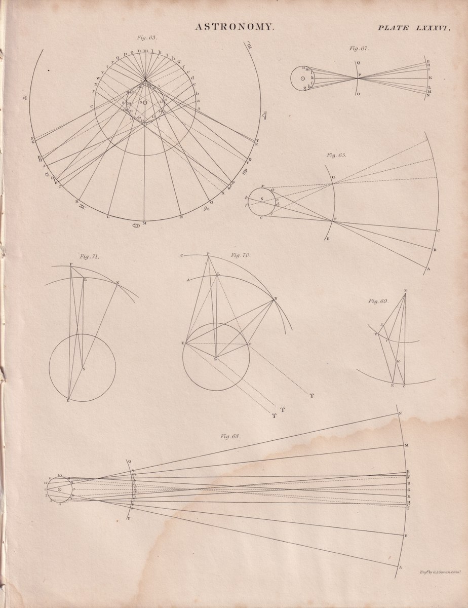 Lot of 5 Antique Prints, Astronomy, 1849, credit Antiche Curiosità©