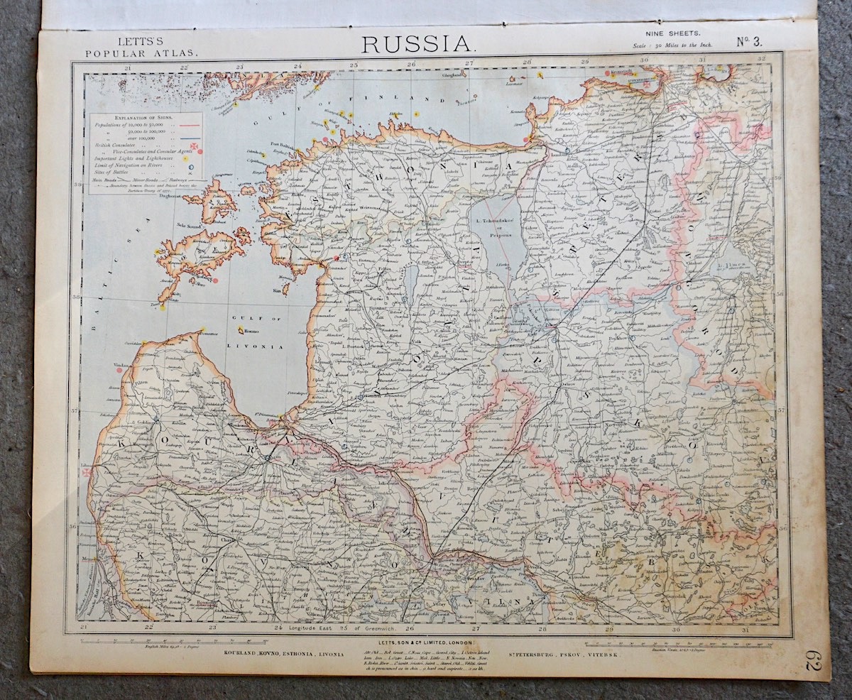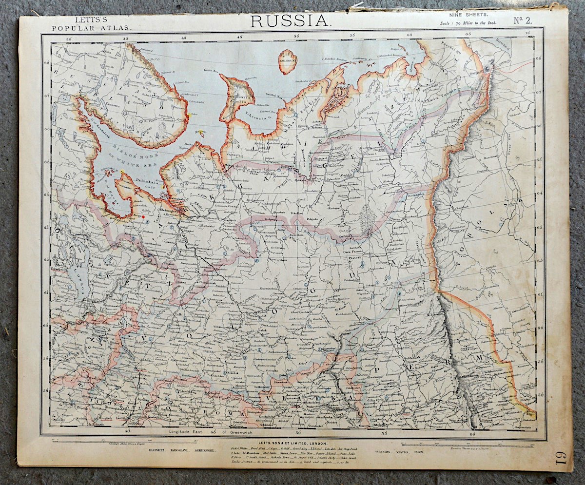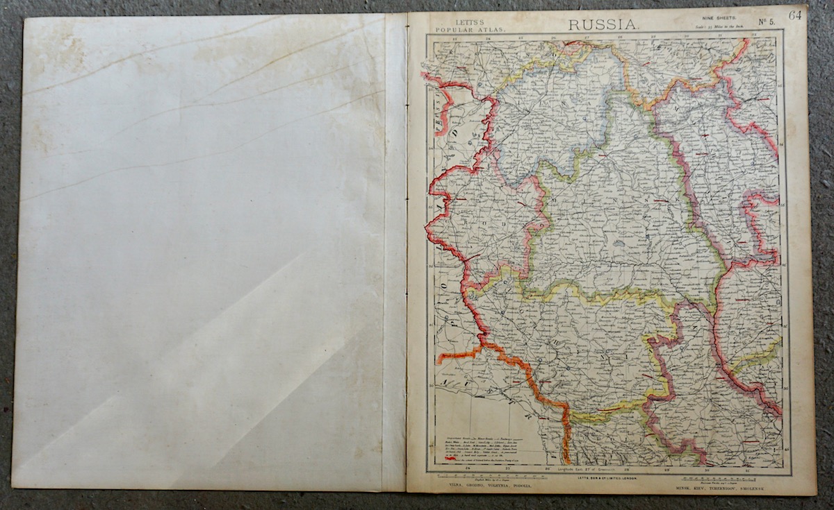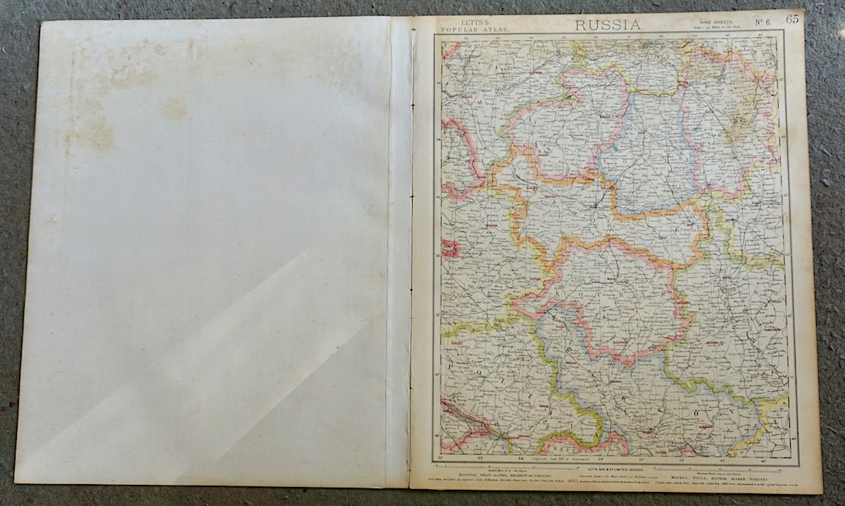 Lot of 7 maps of Russia, 1880, Letts’s Popular Atlas, 43 x 35,5 cm.