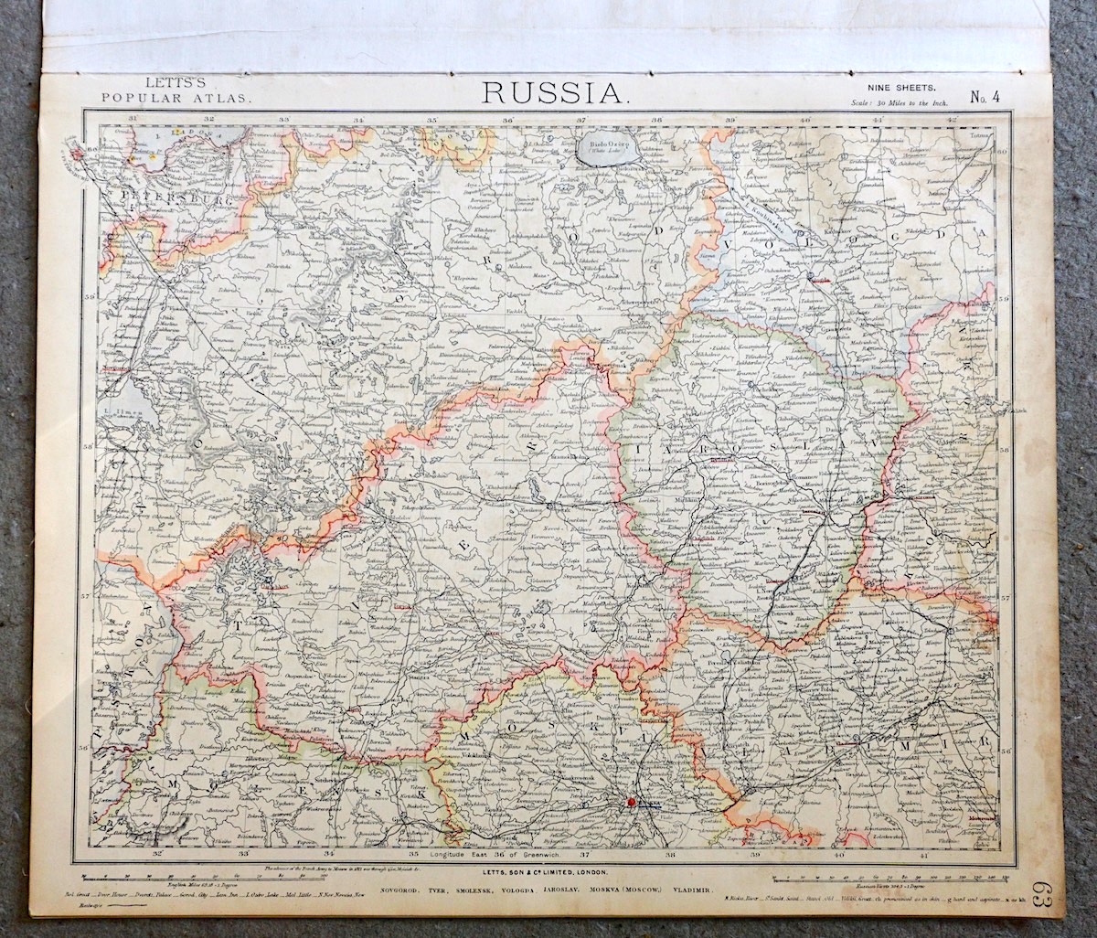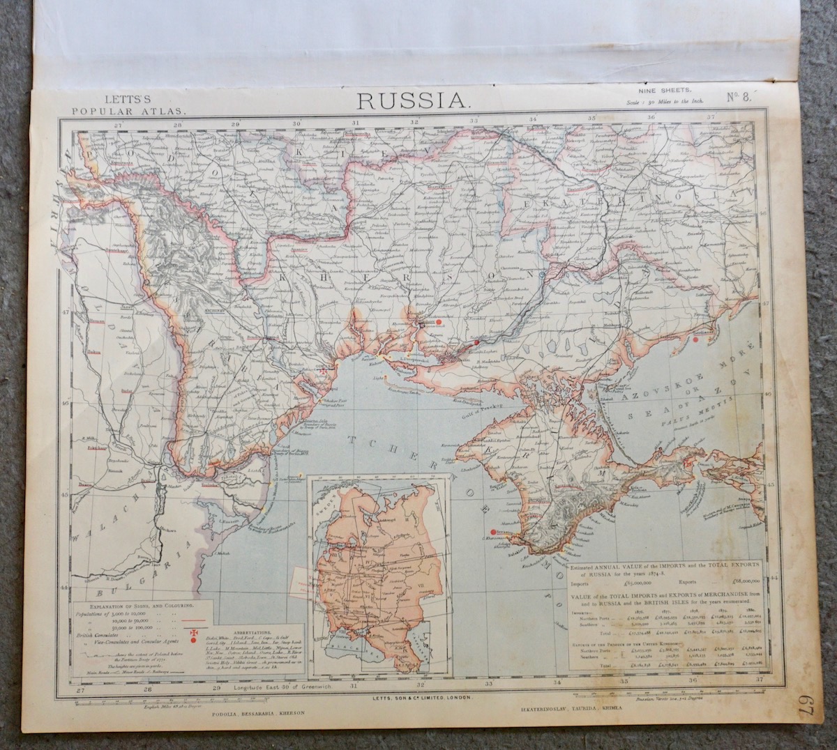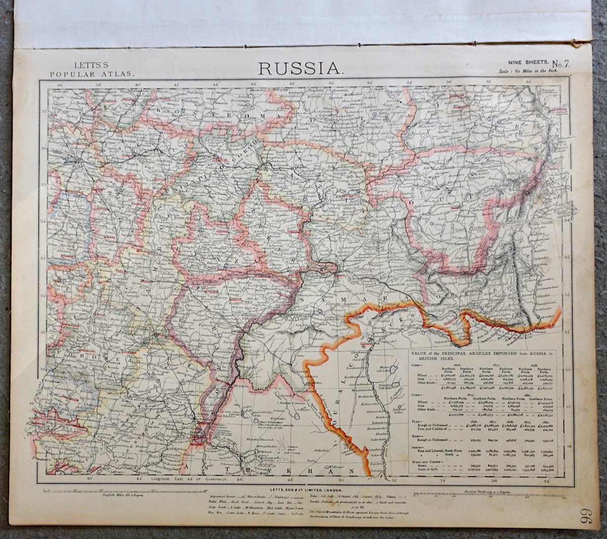Lot of 7 maps of Russia, 1880, Letts’s Popular Atlas, 43 x 35,5 cm.