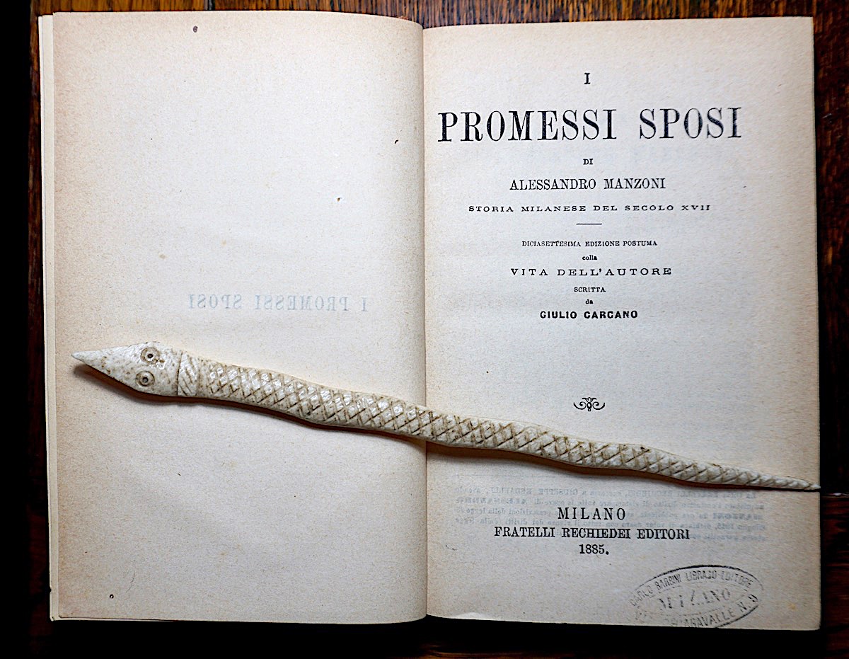 Manzoni, I promessi sposi, storia milanese del secolo XVII, con la vita dell’autore scritta da Giulio Carcano, Milano, Fratelli Rechiedei Editori, 1885, hardcover, 465 pages.