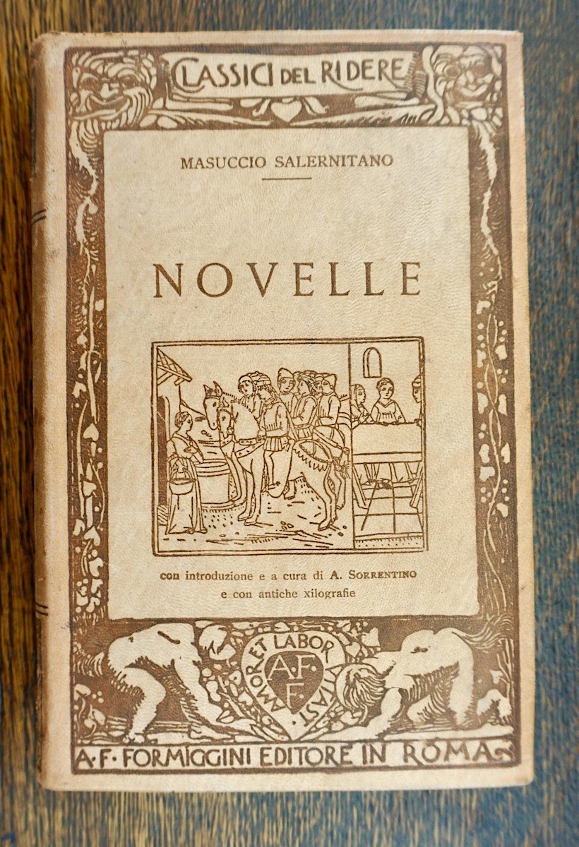 Masuccio Salernitano, Novelle, Formiggini, original rare hard leather cover book, 1929, credit Antiche Curiosità©