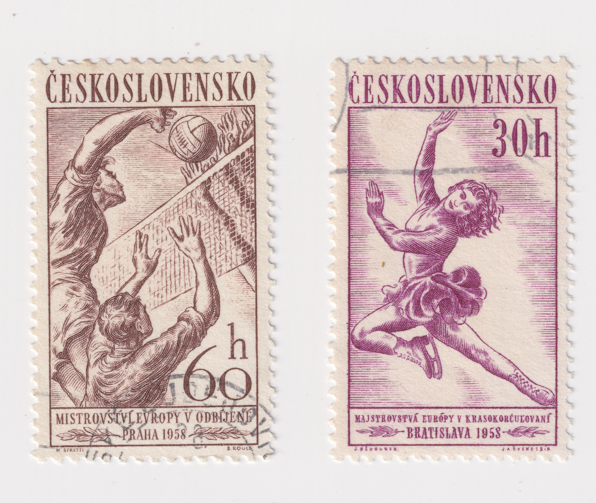Moscow, Russia – A stamp printed in Czechoslovakia shows Girl Skater, Sports 1958 series, credit Antiche Curiosità©