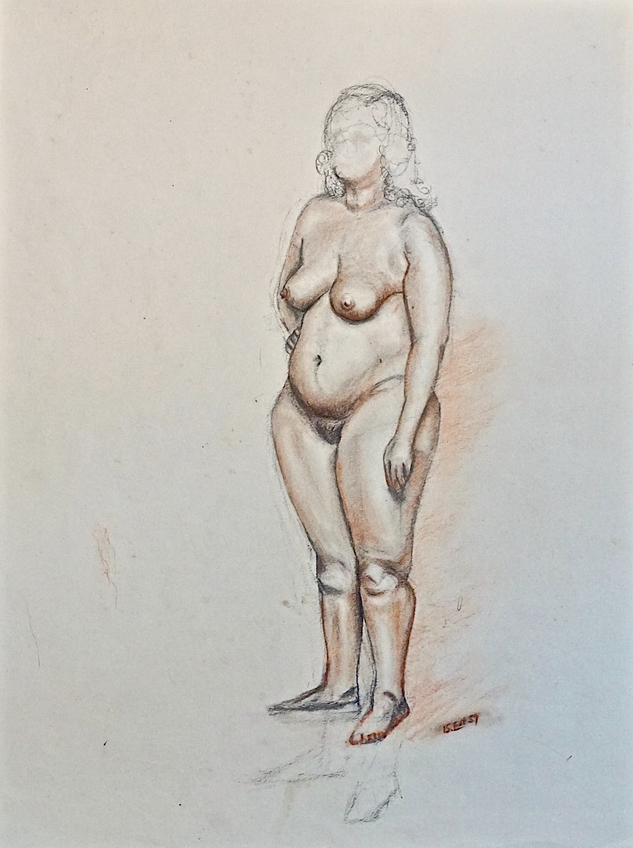 Naked woman, pencil and sanguine on paper, 1957, credit Antiche Curiosità©