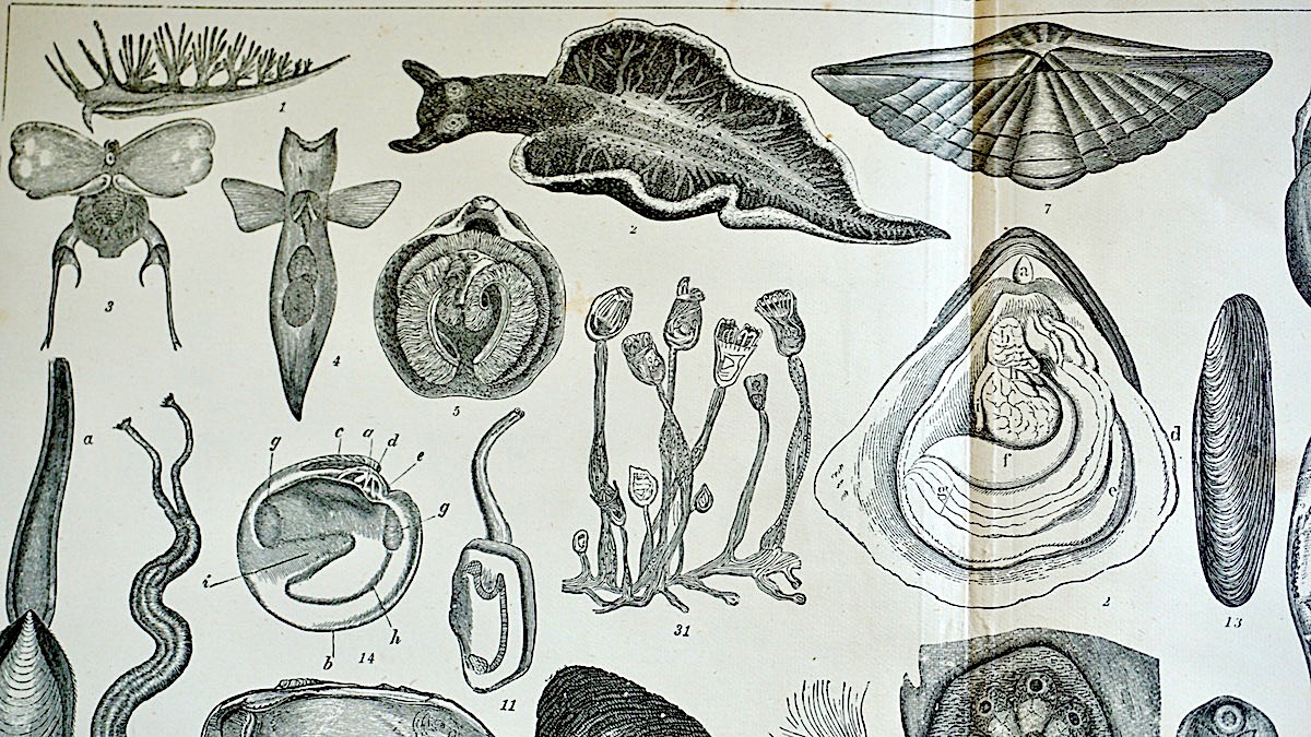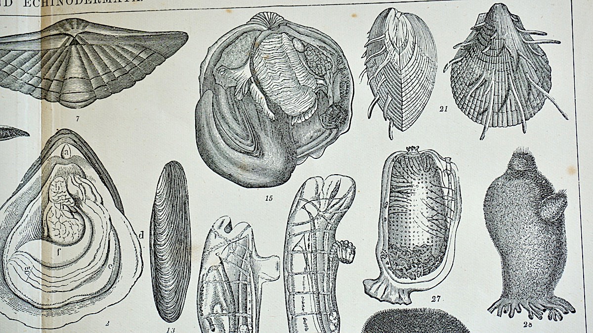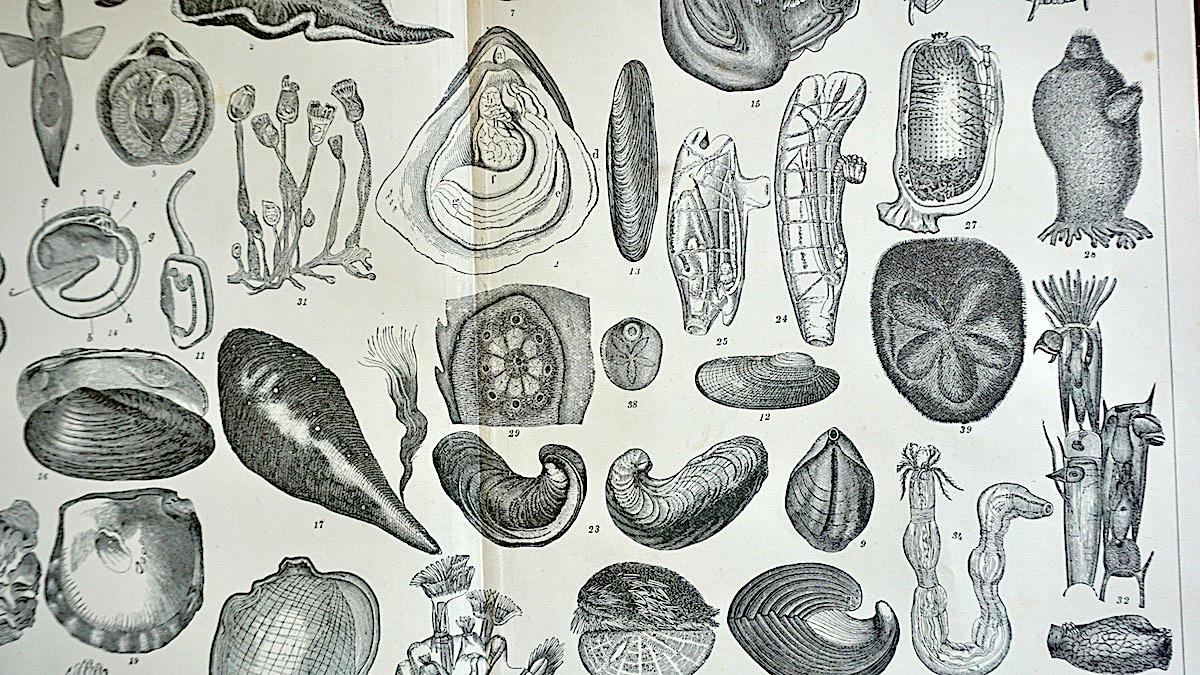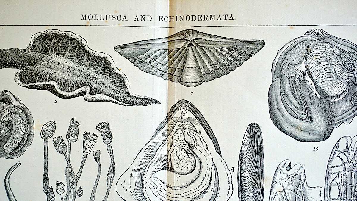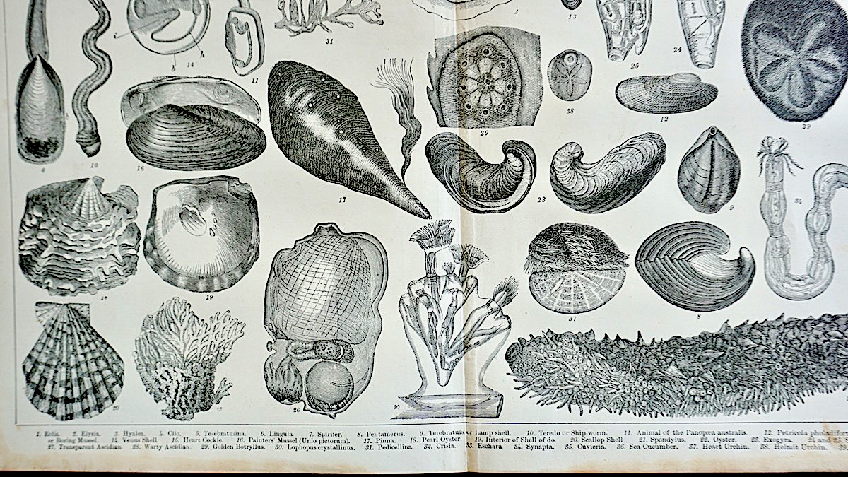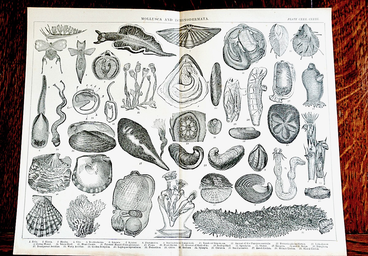 Old Engraving Print, Mollusca and Echinodermata, 1882, credit Antiche Curiosità©