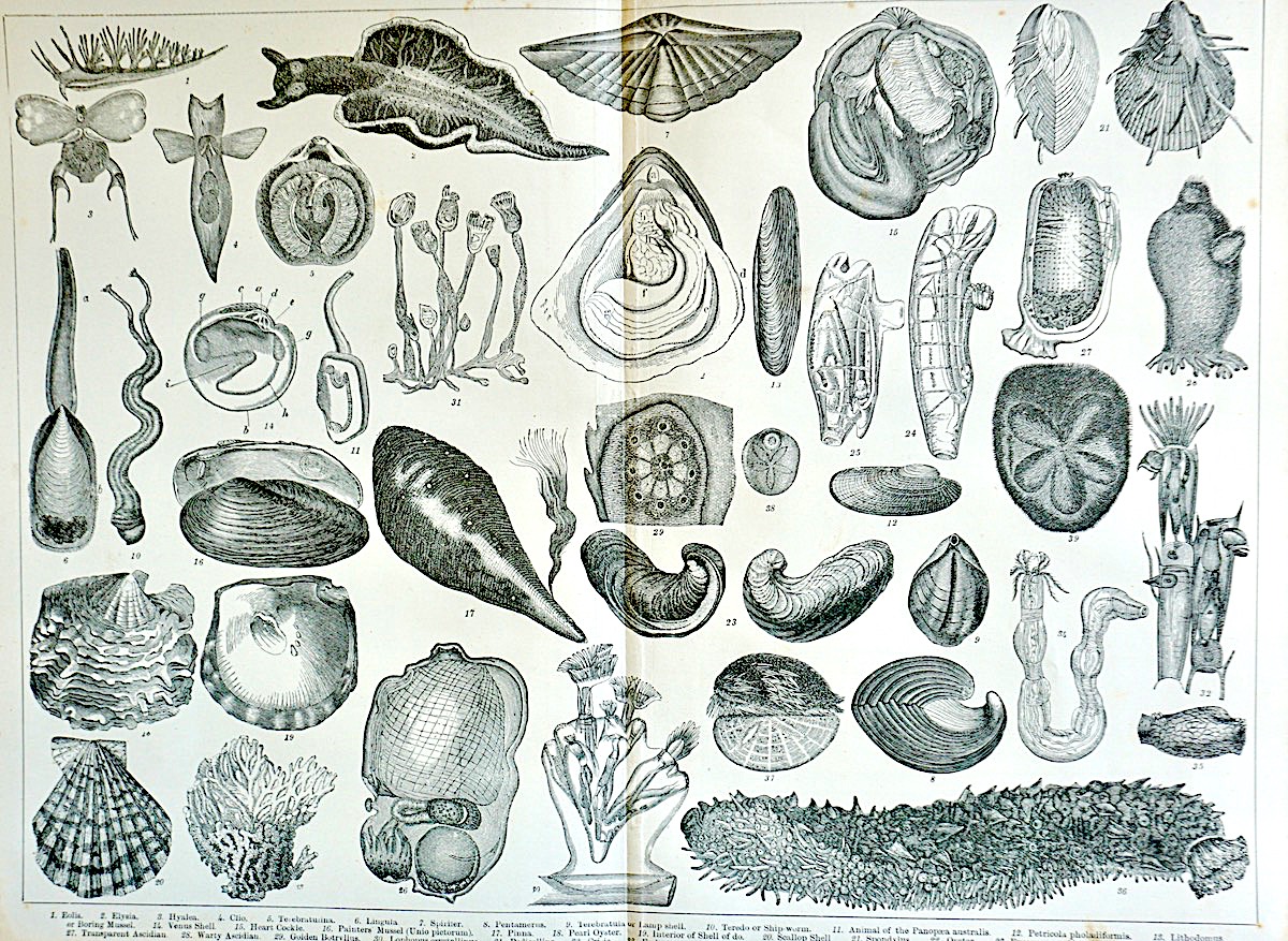 Old Engraving Print, “Mollusca and Echinodermata”, 1882