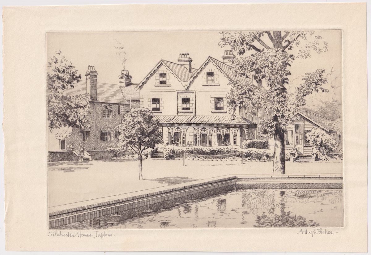 Original Etching by Alfred Hugh Fisher, Silchester House, Taplow, 27.8 x 19 cm.