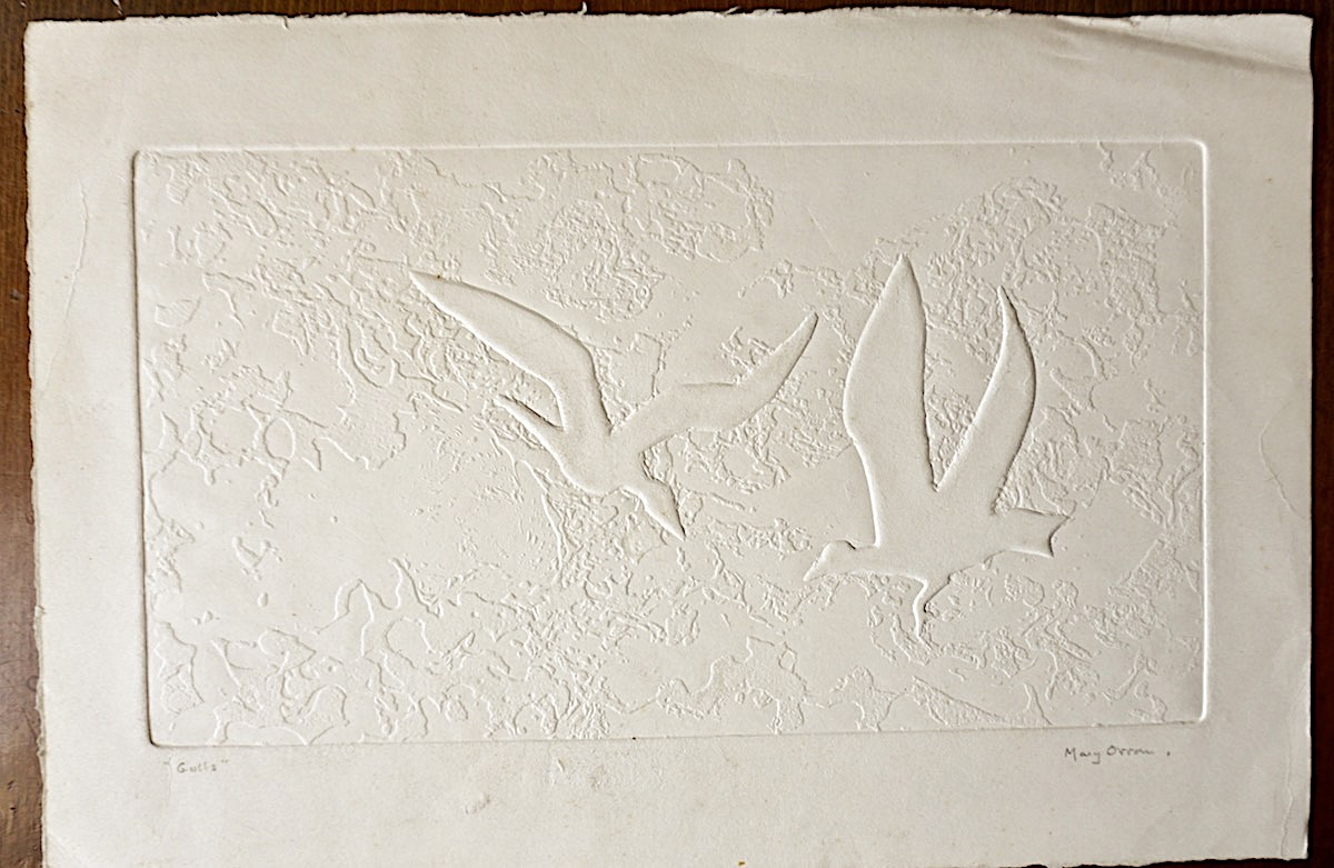 Original Vintage Collagraph, Gulls, signed, credit Antiche Curiosità©