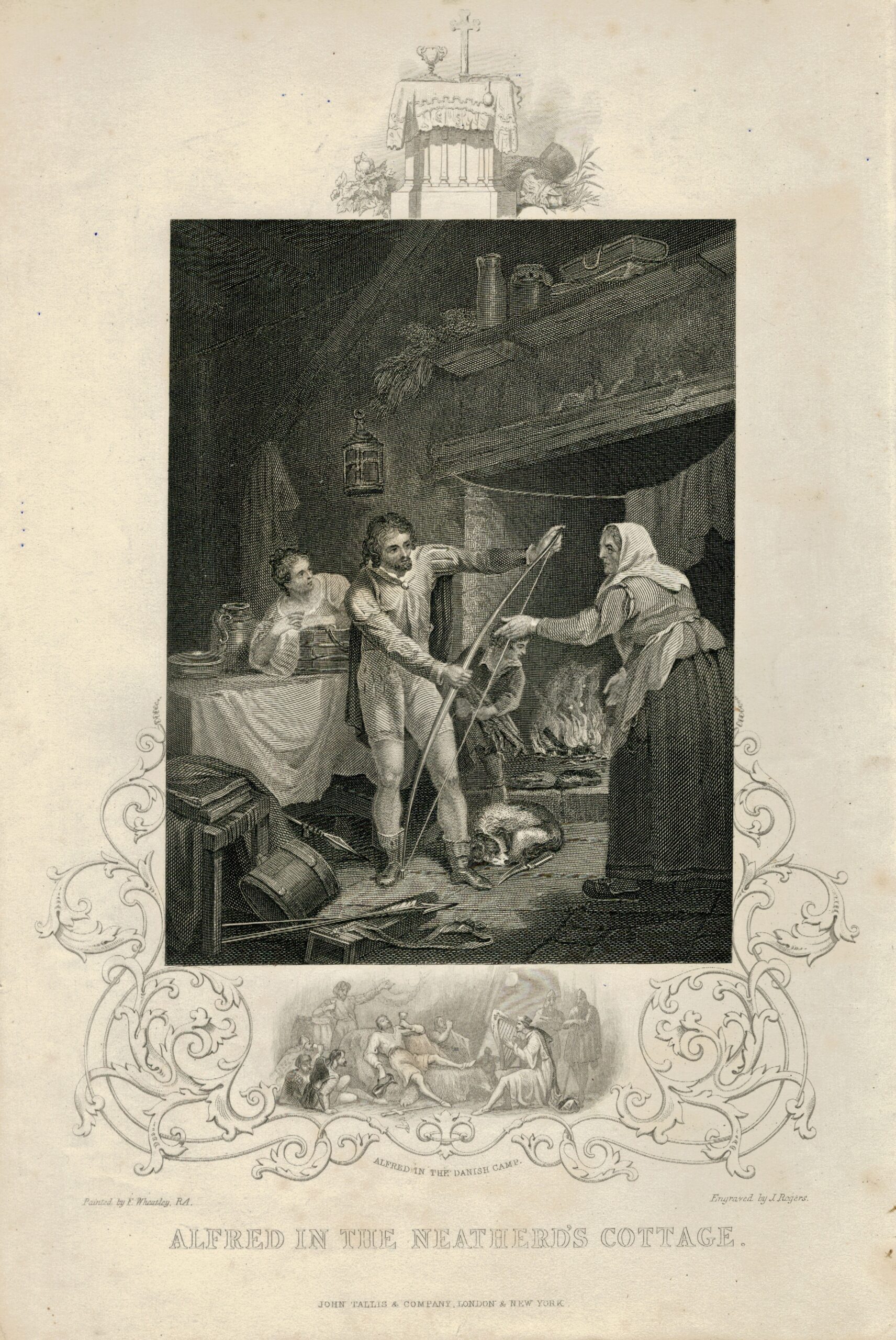 Rare Antique Engraving Print, Alfred in the Neatherd’s Cottage, 1850, credit Antiche Curiosità©