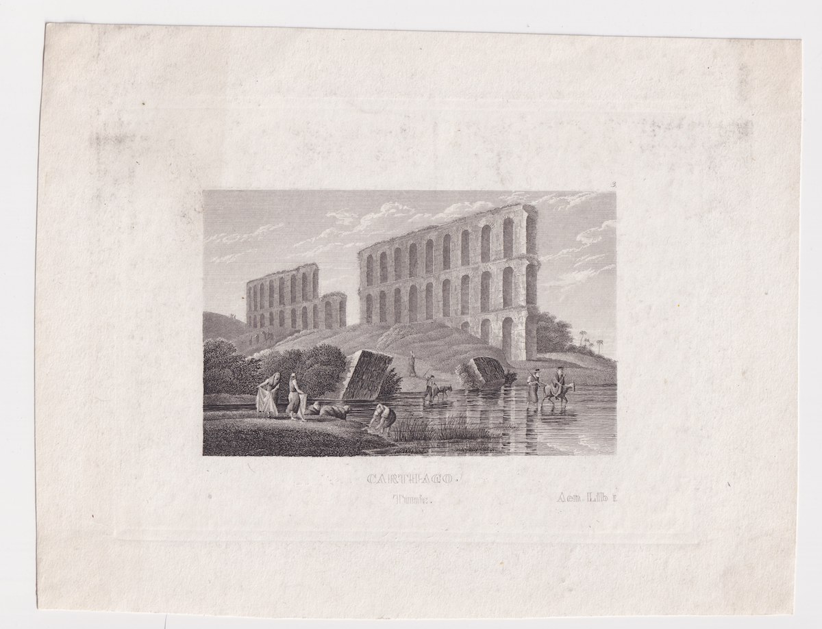 Rare Antique Engraving Print, Carthago, Tunis, 1820 ca. credit Antiche Curiosità©