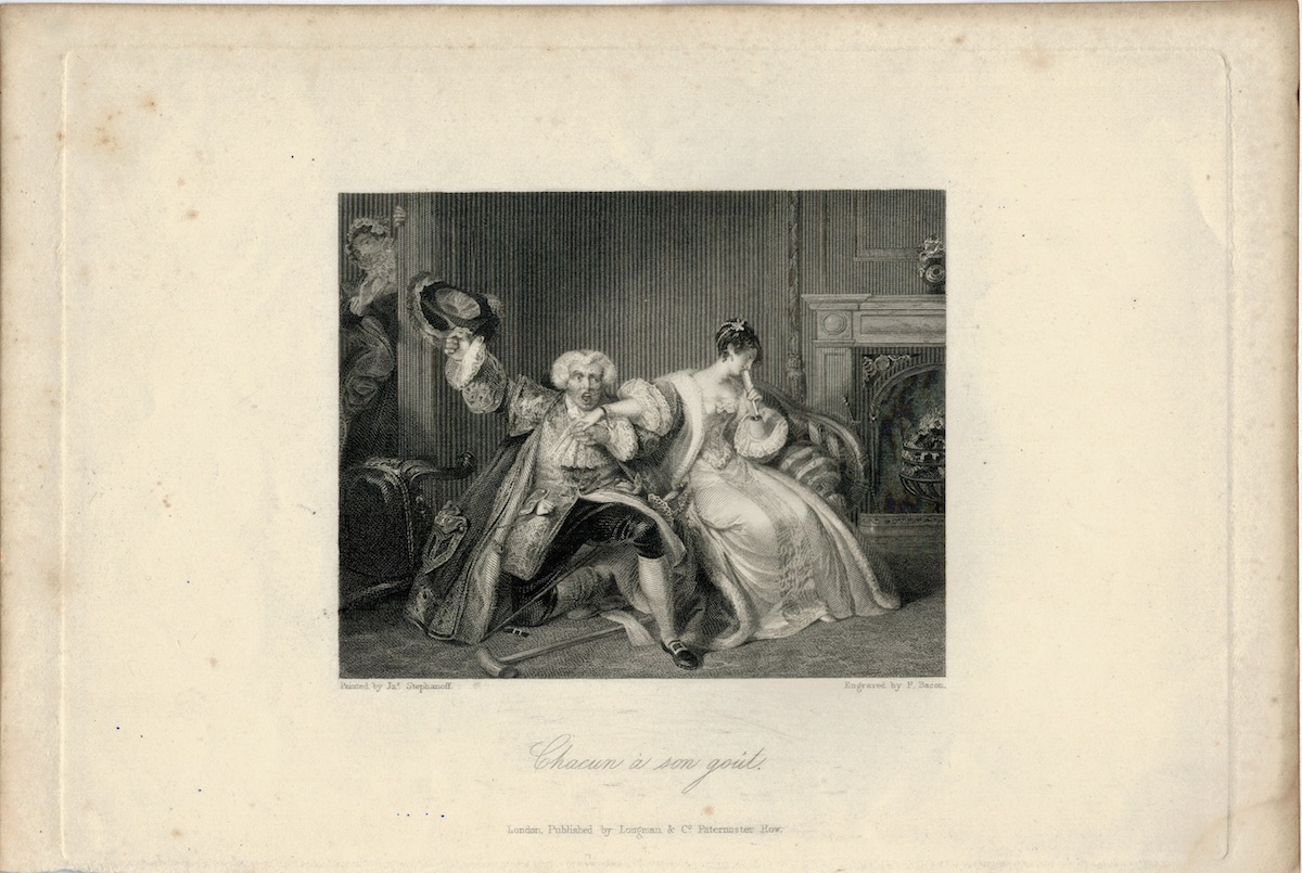 Rare Antique Engraving Print, Chacun à son goût, London, 1836, London by Longman, cm. 24 x 16.