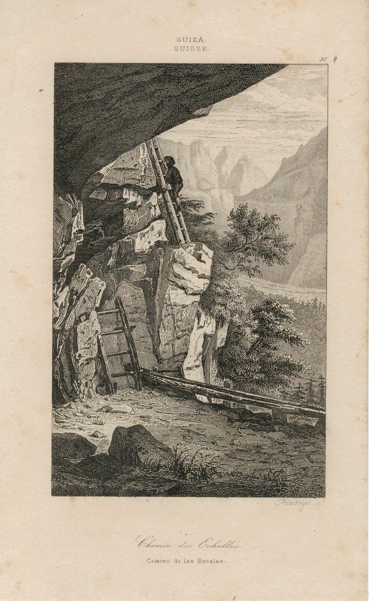 Rare Antique Engraving Print, Chemin des Echelles, 1830, credit Antiche Curiosità©