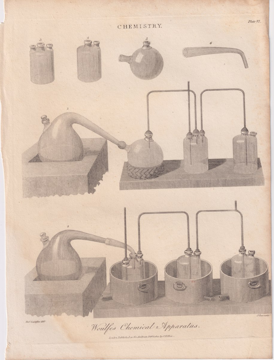 Antique Engraving print, Chemistry, 1801, credit Antiche Curiosità©