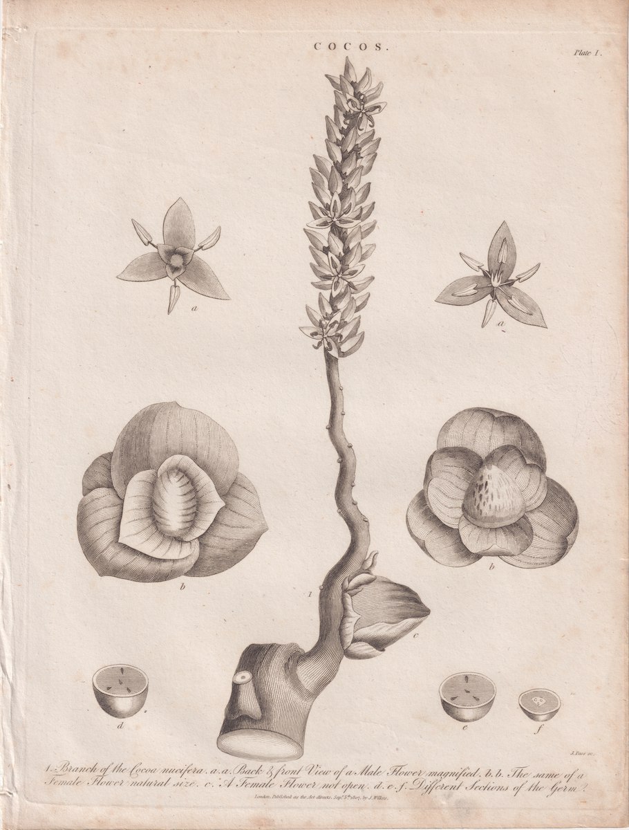 Rare Antique Engraving Print, Cocos, 1807, credit Antiche Curiosità©