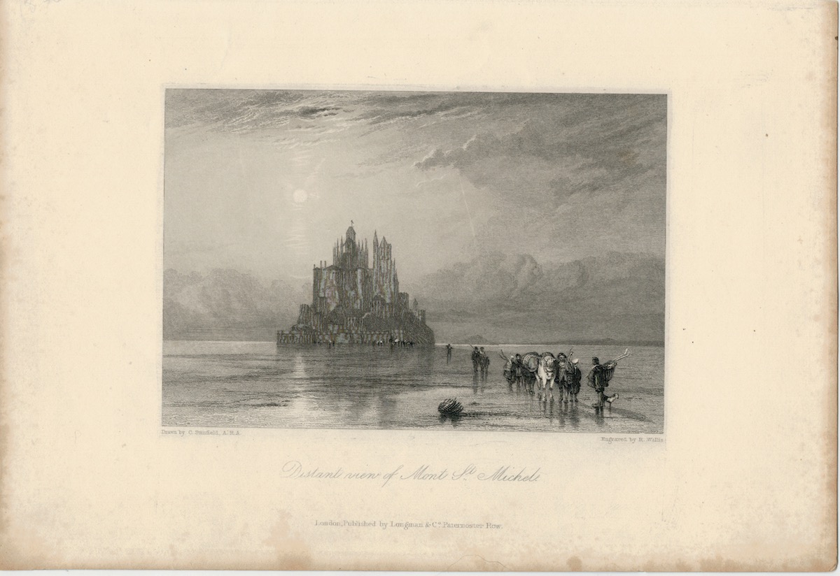 Antique Engraving Print, Distant View of Mont St. Michael, 1836, credit Antiche Curiosità©