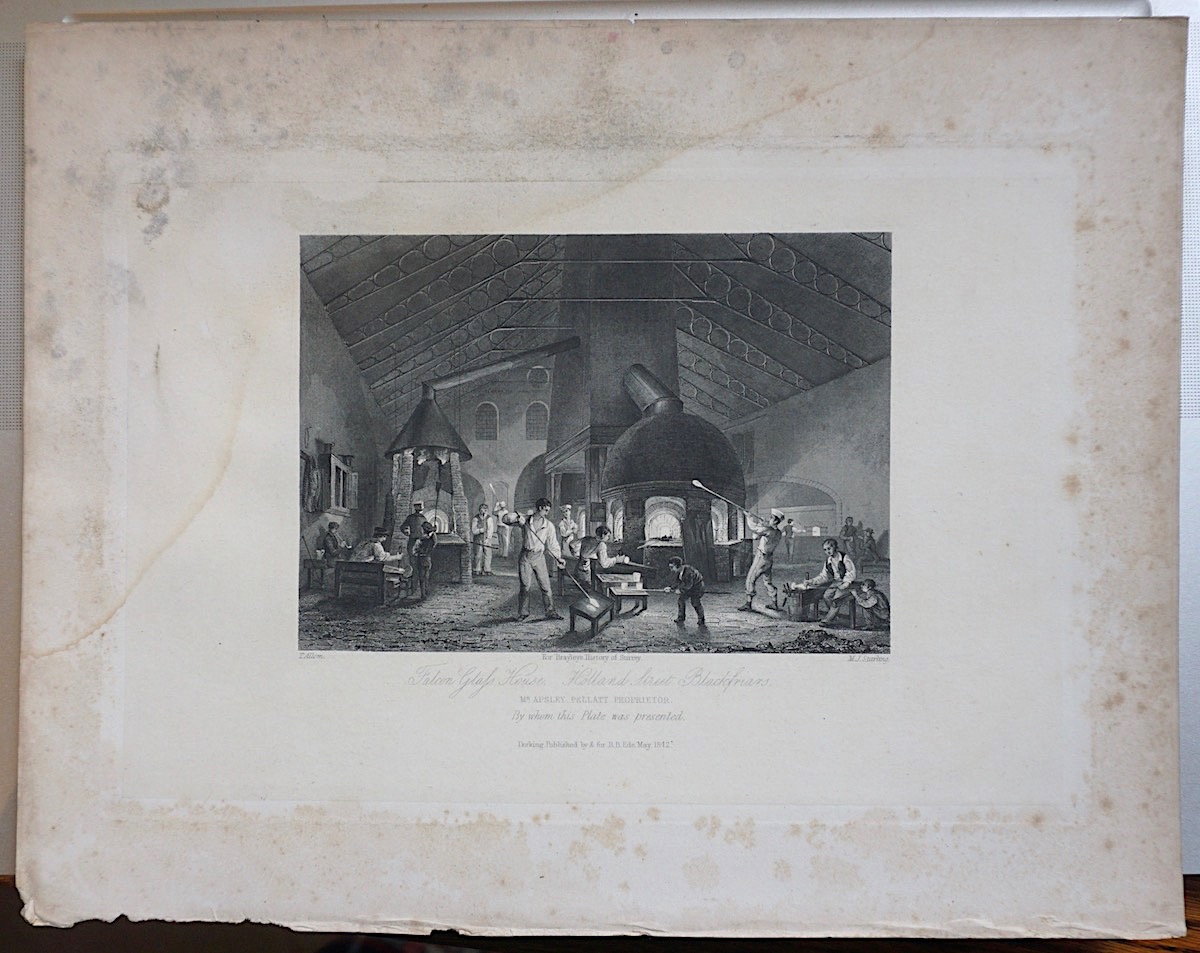Antique Engraving Print, Falcon Glass House, Holland Street Blackfriars, 1842, T. Allom, for Brayleys History of Surrey, 29,5 x 23 cm.
