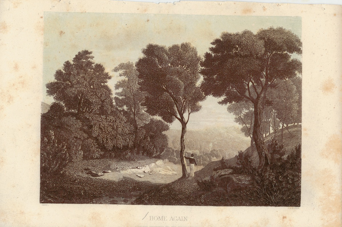 Rare Antique Engraving Print, Home Again, 1840 ca., credit Antiche Curiosità©