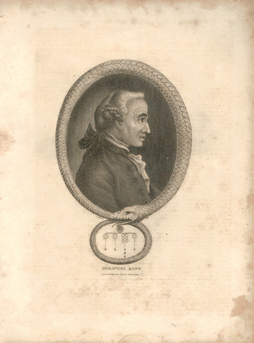 Rare Antique Engraving Print, Immanuel Kant, 1 April 1812, by Adlard & Jones, cm. 27 x 20.