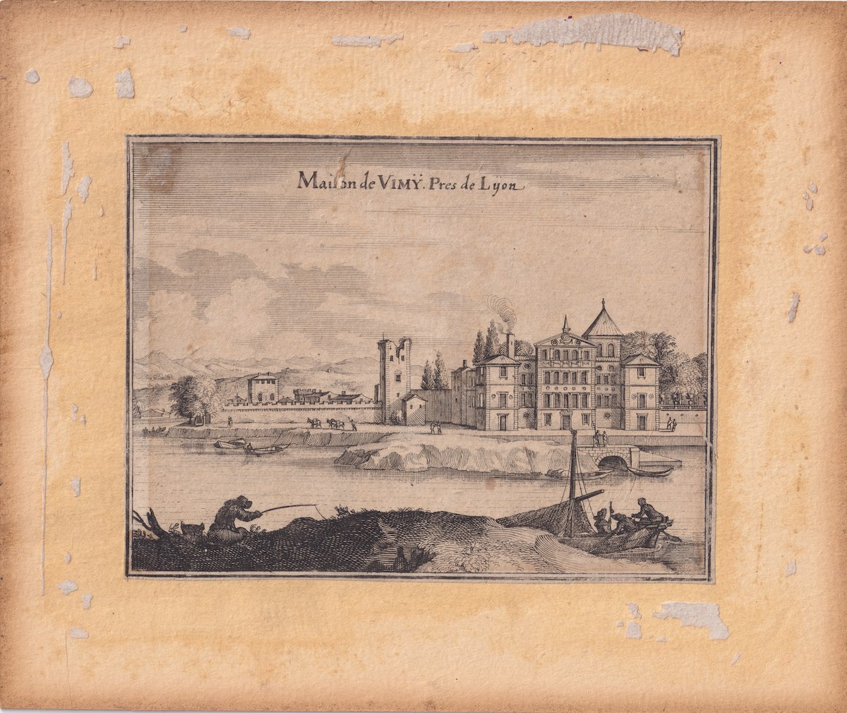 Rare Antique Engraving Print, Maison de Vimy, pres de Lyon, 1701 ca. 24.3 x 20.3 cm.