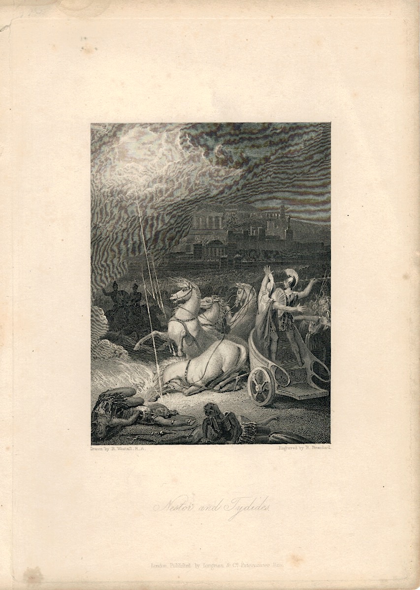 Rare Antique Engraving Print, Nestor and Tydides, 1836, cm. 22,8 x 16,3, drawn by R. Westall, engraved by R. Brandard.