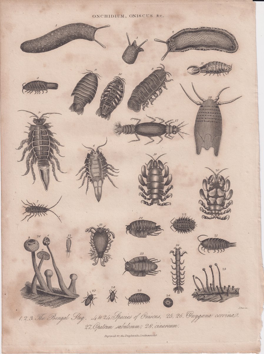 Antique Engraving Print, Onchidium, Oniscus, 1819, 20.3 x 27.3 cm.