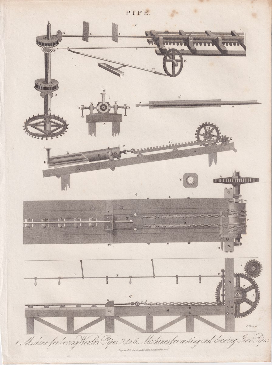 Rare Antique Engraving Print, Pipe, 1825, 20 x 27 cm.